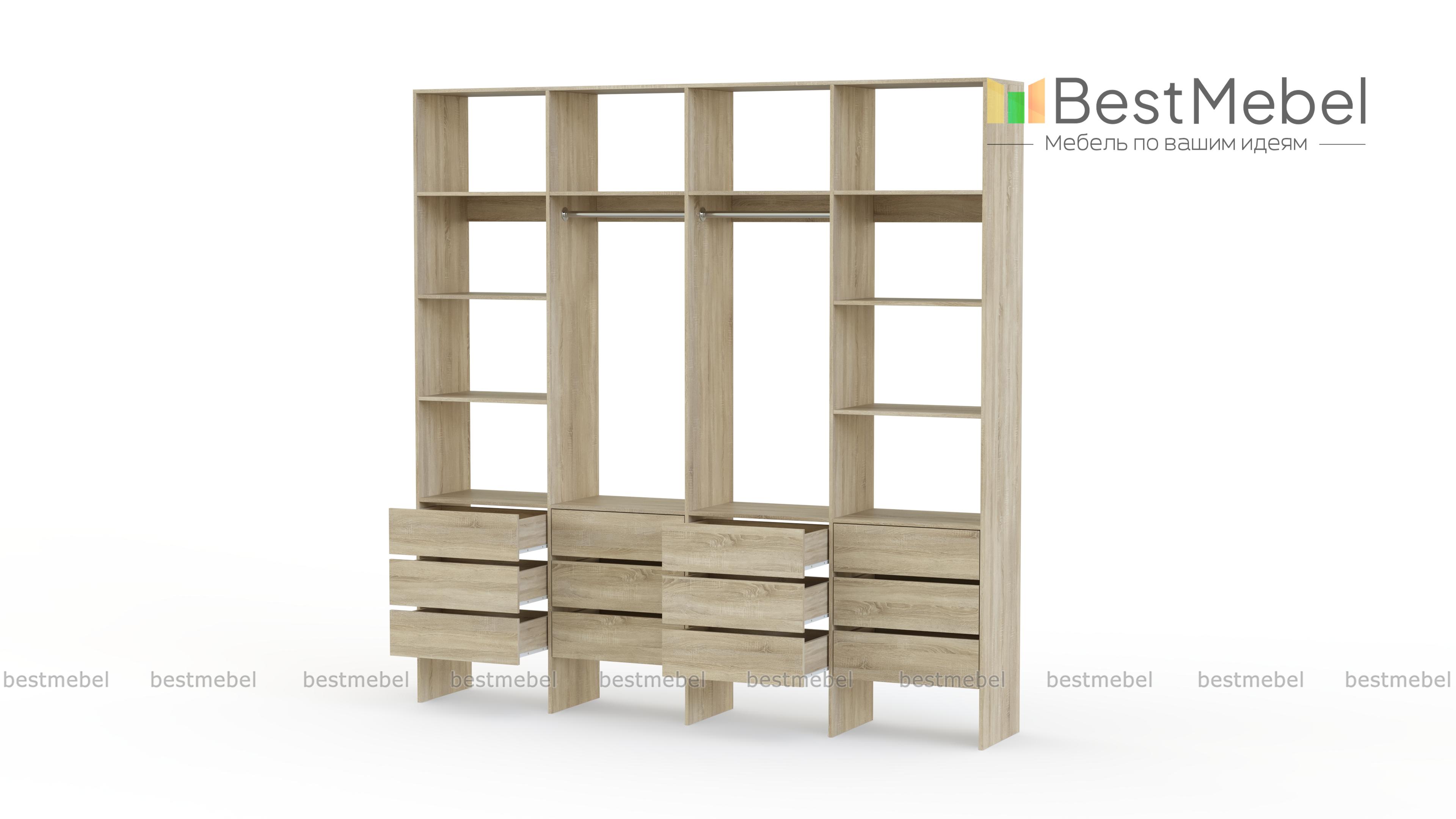 Стеллаж для одежды Мирта 64 BMS — современное решение для вашей прихожей и гардеробной. Конструкция из износостойкой ламинированной ДСП базового оттенка надежна, эстетична и доступна по цене. Практичная комбинация двух штанг, верхних и боковых полок, а также большого количества выдвижных ящиков делает хранение гардероба максимально удобным. Купить стеллаж для одежды Мирта 64 BMS вы сможете на сайте нашего интернет-магазина, подобрав по своему вкусу цвет и размеры.