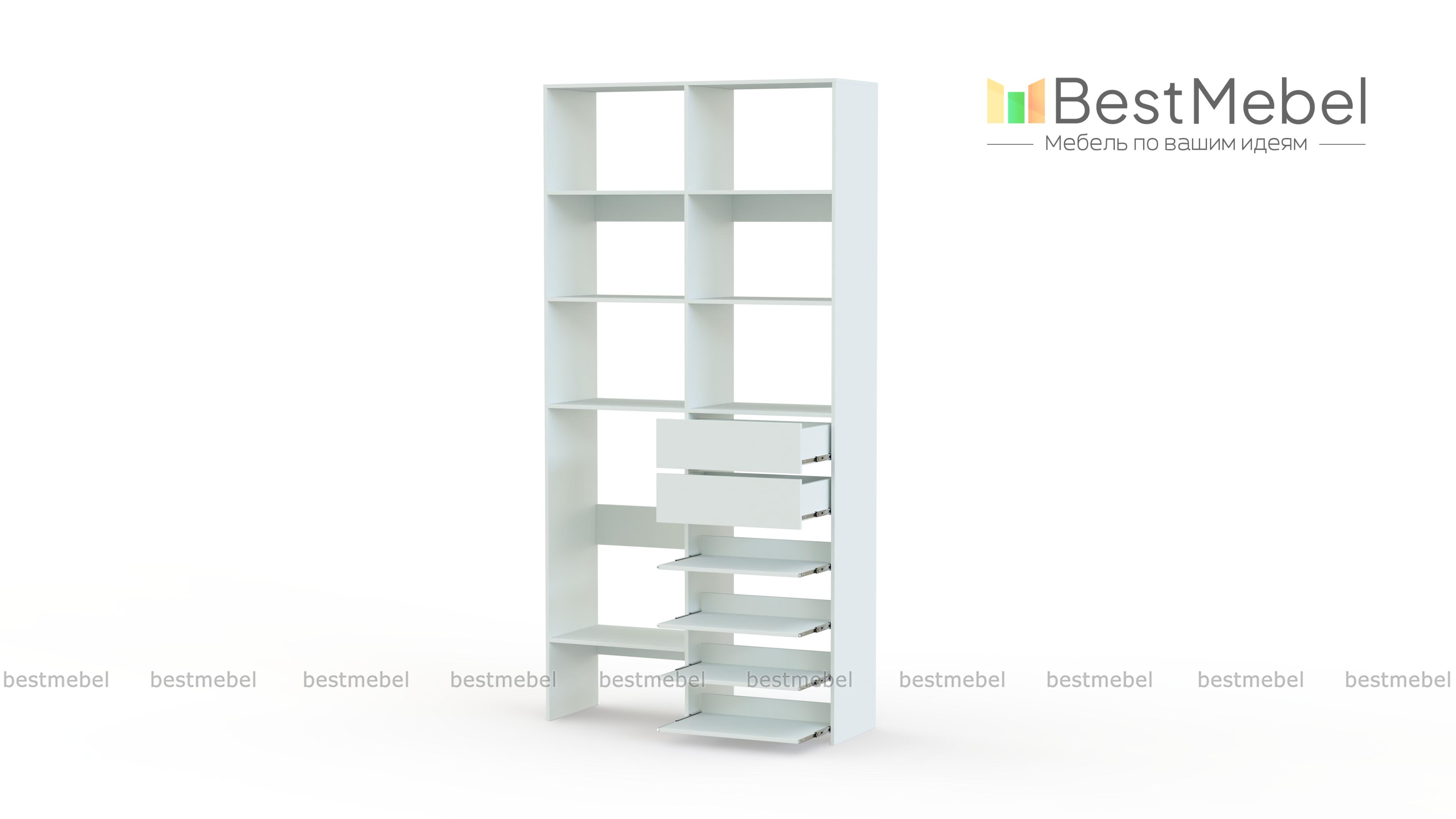 Стеллаж для одежды Мирта 86 BMS поможет вам легко избавиться от беспорядка. Секции разных размеров, два выдвижных ящика и четыре полки на направляющих прекрасно подойдут для хранения сложенной одежды, мелкого трикотажа, корзин и коробок с вещами. Благодаря скромным габаритам стеллаж легко поставить в нишу, разместить в маленькой прихожей или гардеробной. Купить стеллаж для одежды Мирта 86 BMS с выбором цвета и размеров приглашаем в наш интернет-магазин.