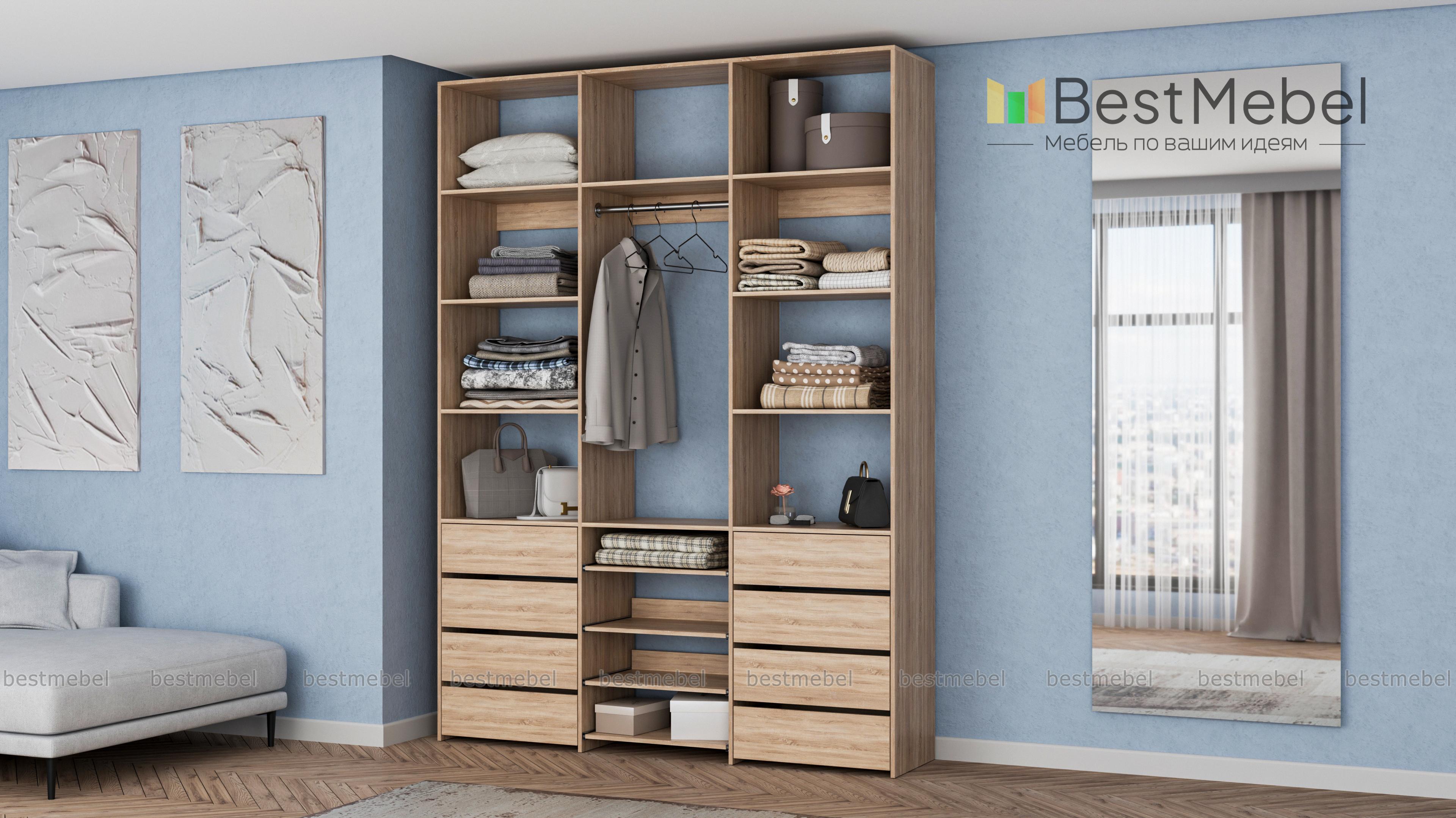 Стеллаж для одежды Мирта 96 BMS предназначен специально для хранения в прихожих, гардеробных, торговых залах. Удобная открытая конструкция объединила платяную секцию с просторными полками и расположенными внизу выдвижными ящиками и панелями. Лаконичный дизайн и природный оттенок подходят интерьерам любого типа, ламинированное покрытие устойчиво к появлению царапин и влаге. Купить стеллаж для одежды Мирта 96 BMS вы сможете в нашем интернет-магазин, подобрав цвет и размеры.