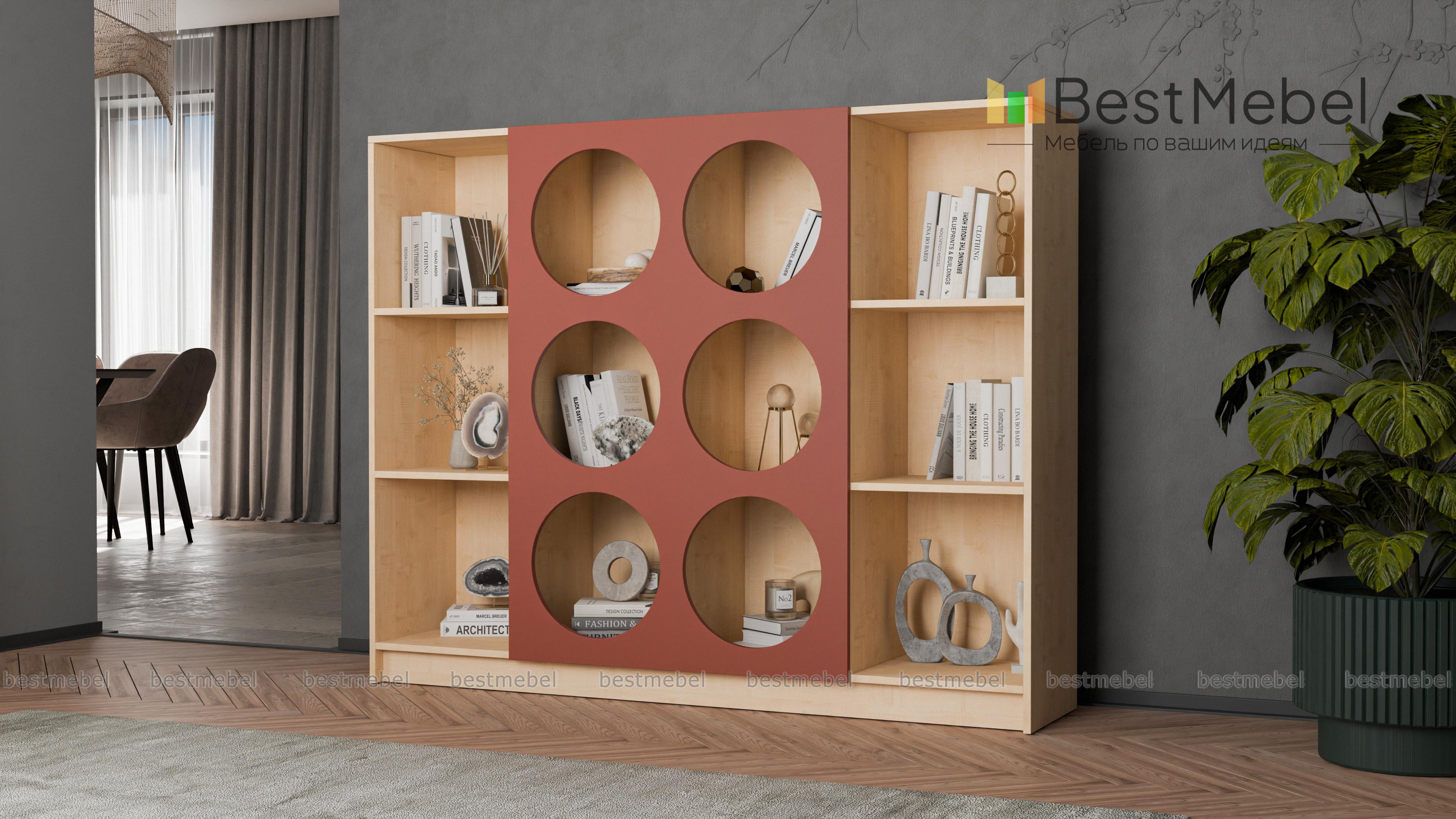 Стеллаж Руди 1 BMS — необычное решение для хранения в детских комнатах, гостиных или современных офисах. Просторные полки дают возможность эффектно расставить книги и декор, разместить игрушки, гаджеты и симпатичные коробки с мелочами. Для фасада стеллажа выбран глубокий контрастный оттенок, а большие вырезы имеют стильную круглую форму. Купить стеллаж Руди 1 BMS вы сможете в нашем интернет-магазине, самостоятельно подобрав размеры и цветовую гамму.
