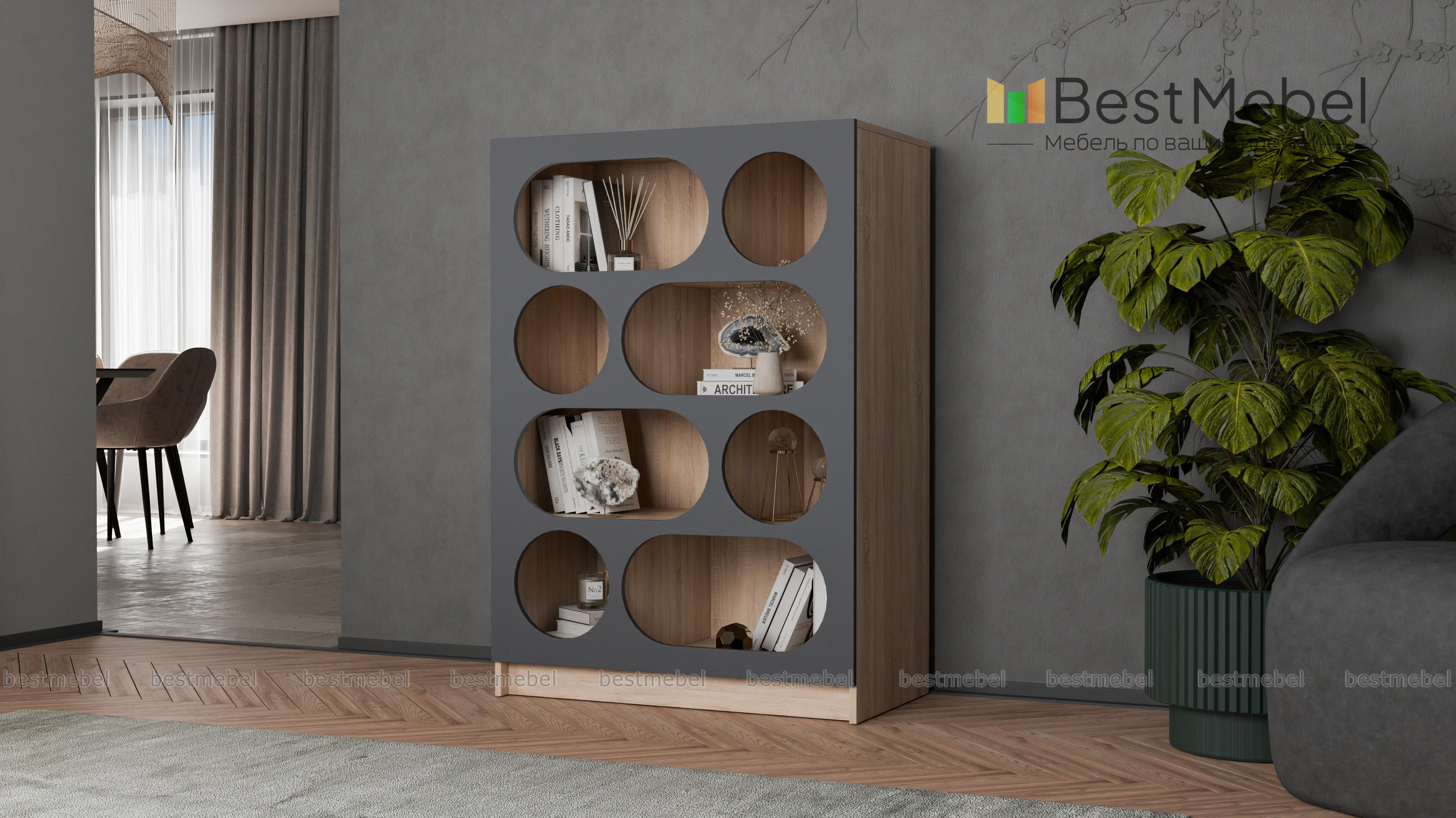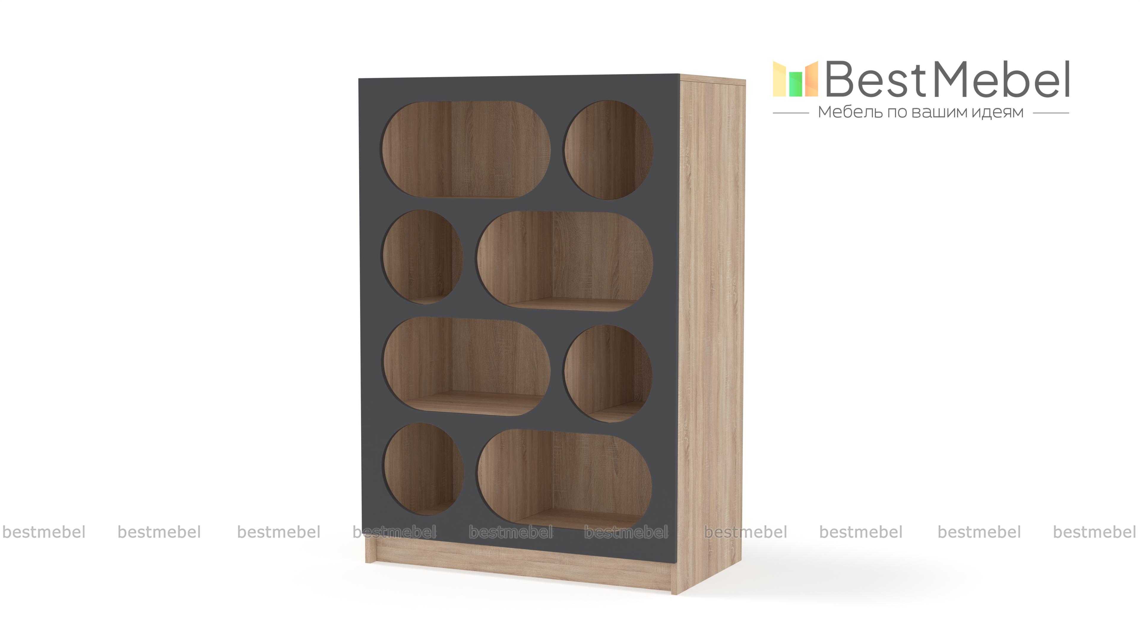 Стеллаж Руди 3 BMS может хранить самые разные предметы и интерьерные украшения: от детских игрушек до предметов коллекции. Полки широкого стеллажа разделены вертикальными перегородками и закрыты эффектным фасадом контрастного цвета. Благодаря овальным и круглым вырезам вещи необычно смотрятся и всегда находятся в удобном доступе. Купить стеллаж Руди 3 BMS, изготовленный в любых оттенках из нашего каталога на выбор, вы сможете на сайте интернет-магазина.
