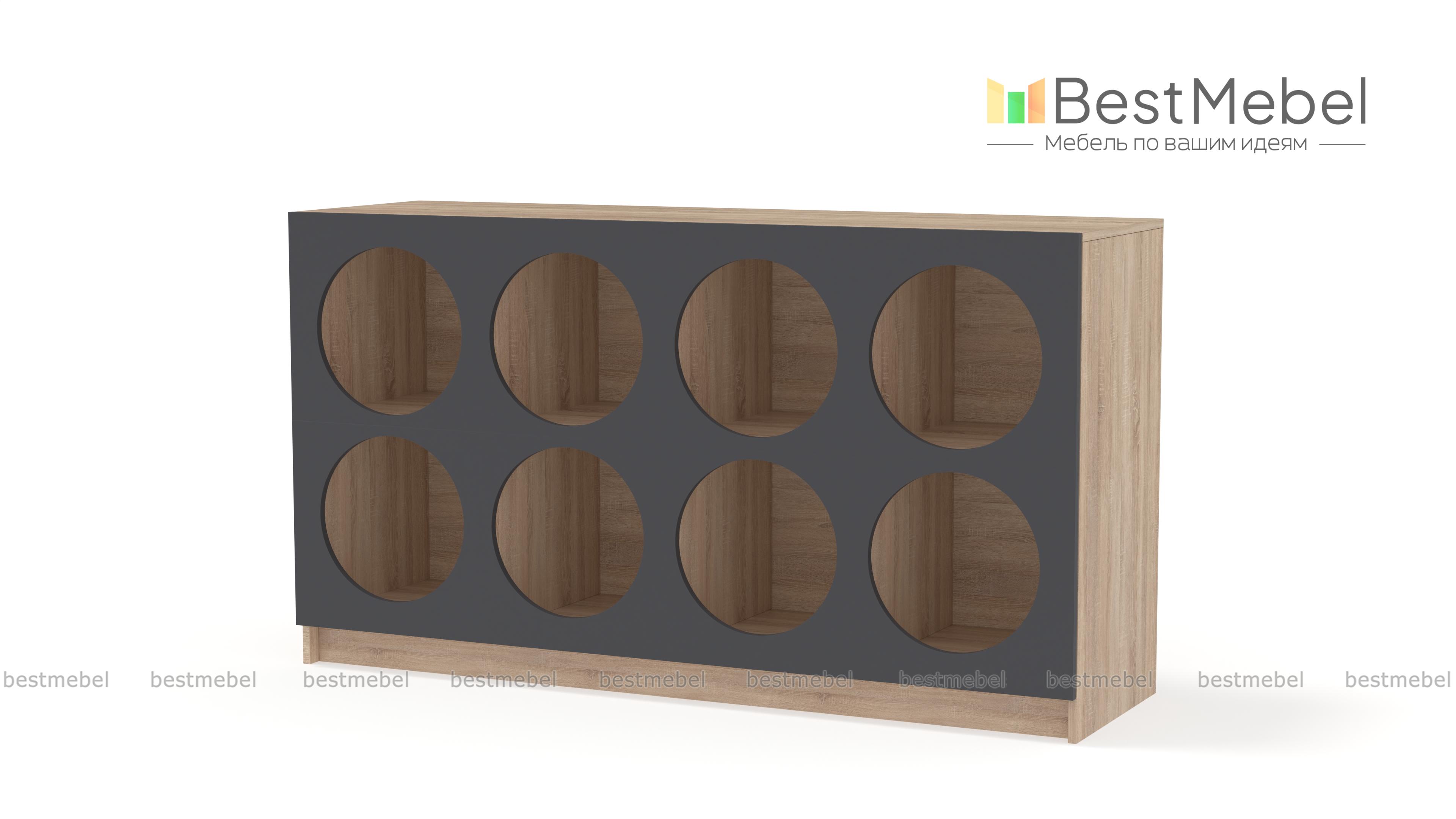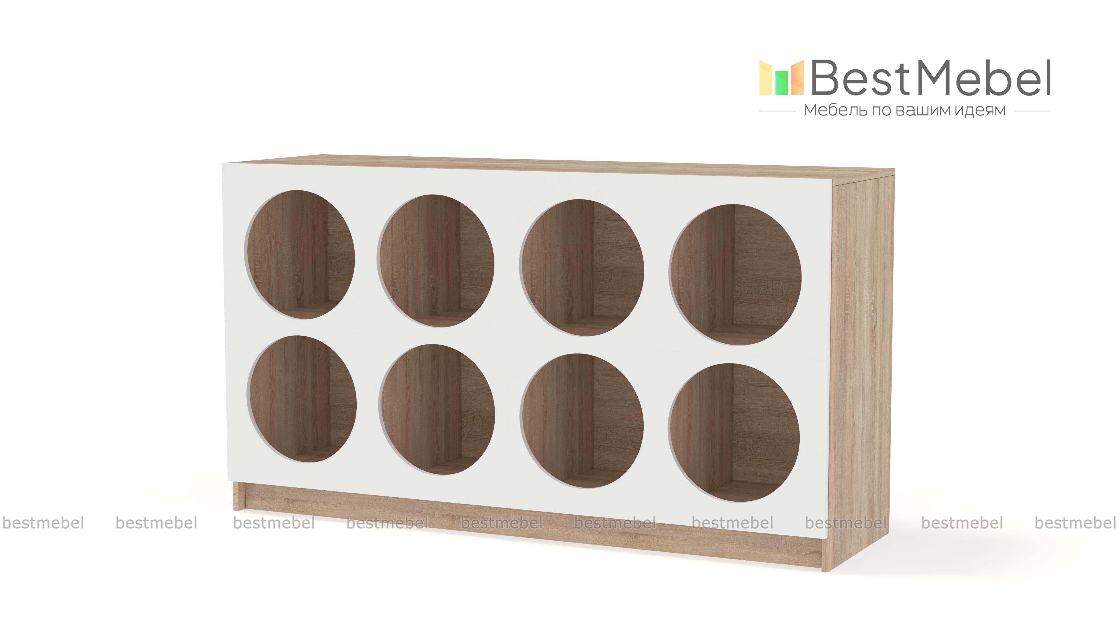 Стеллаж Руди 6 BMS станет главным декоративным акцентом в интерьере вашей гостиной или подростковой комнаты. Динамичный современный дизайн создает цветной фасад, оформленный восемью круглыми вырезами. На открытых полках вы разместите книги и гаджеты, предметы коллекции и органайзеры с мелочами, а широкая верхняя панель подходит для аудио- и видеоаппаратуры, лампы или декора. Купить стеллаж Руди 6 BMS в наиболее подходящем размере и цвете вы сможете на сайте нашего интернет-магазина.