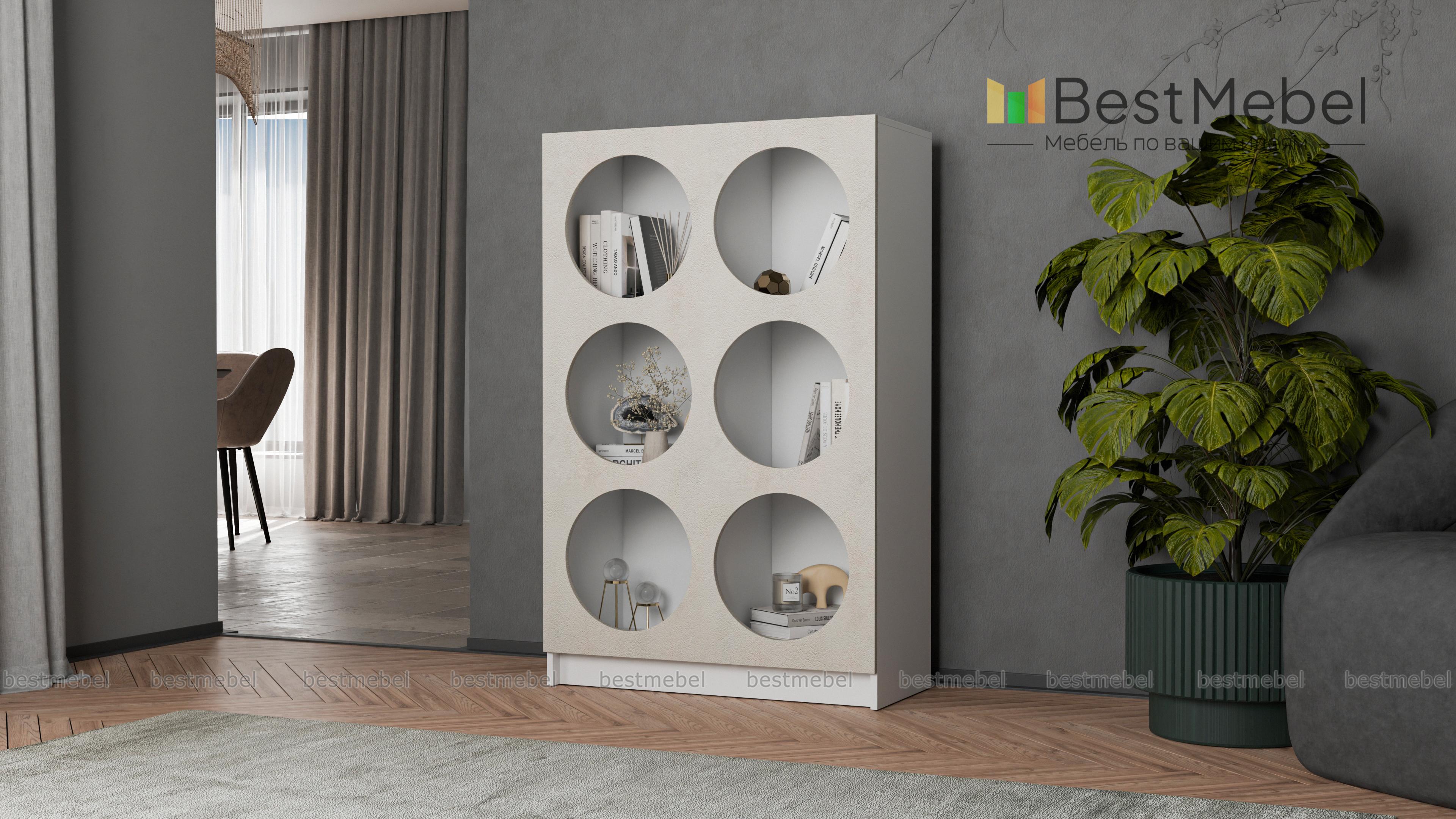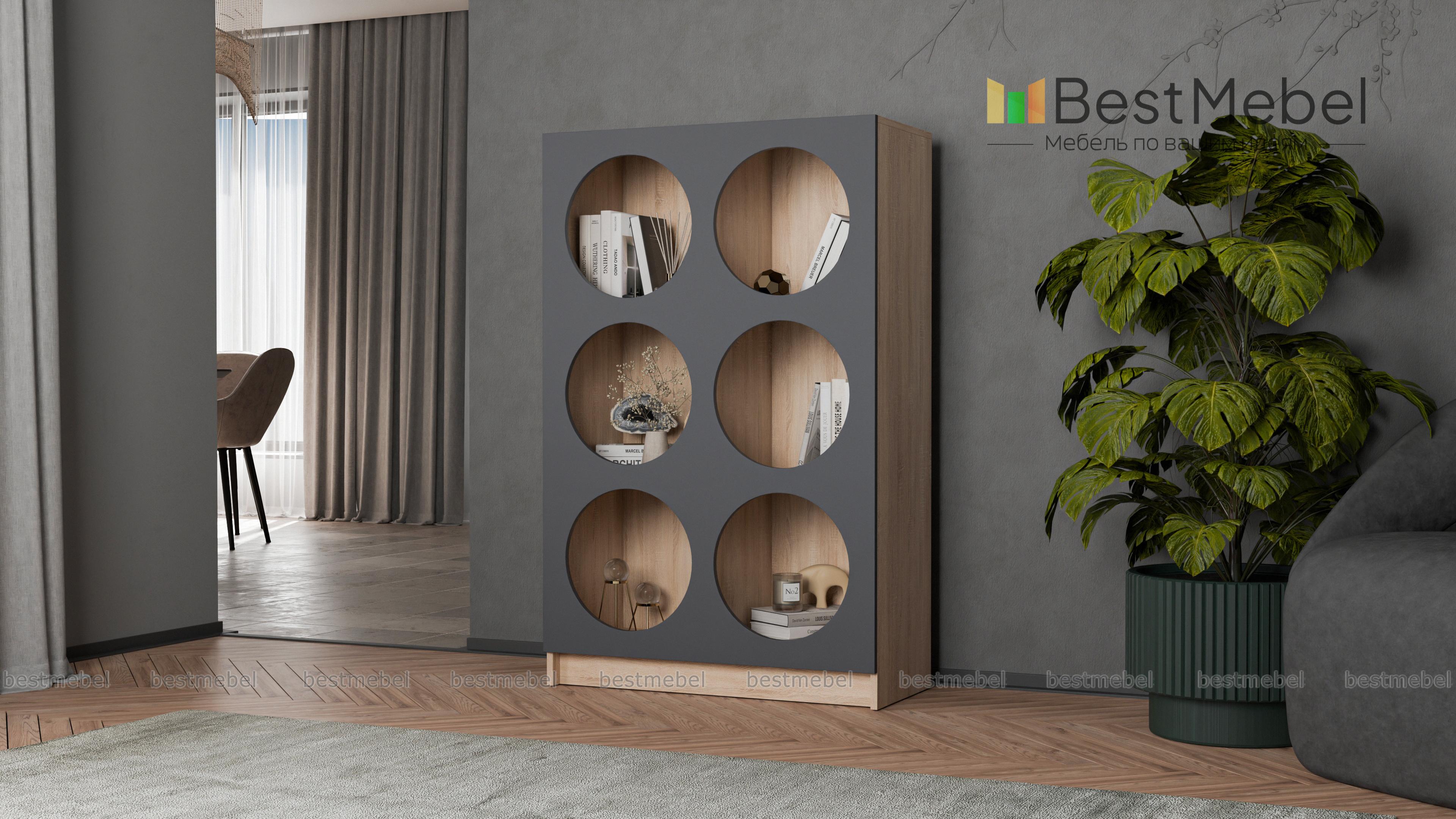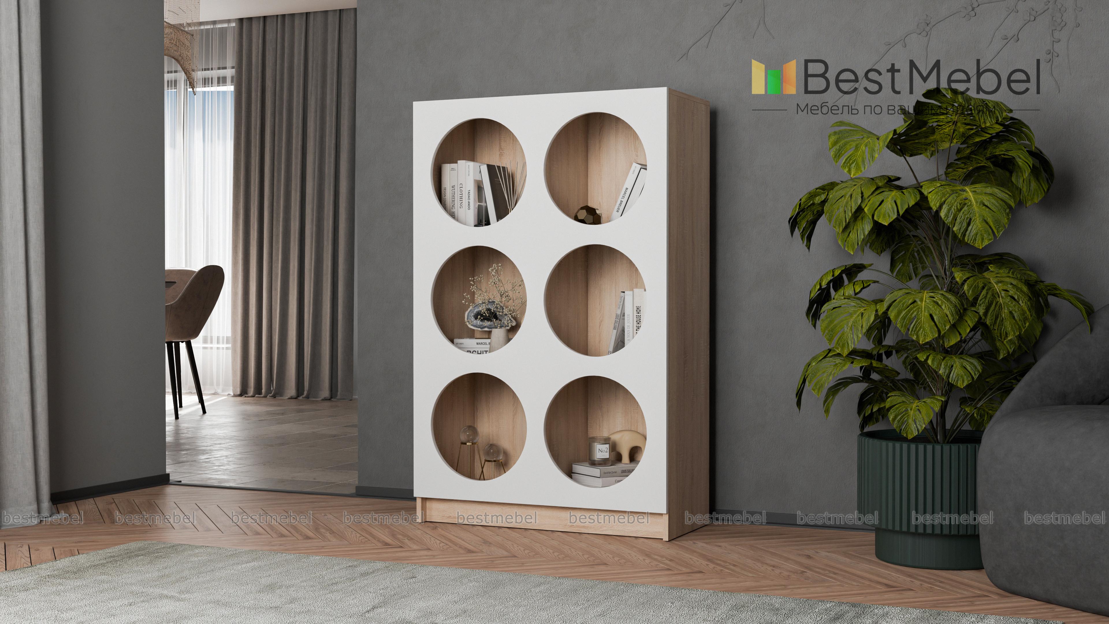 Стеллаж Руди 8 BMS позволит без труда разместить книги, предметы декора, красивую посуду и другие вещи. Шесть вместительных полок имеют оригинальные круглые вырезы, превращая практичный предмет меблировки в стильный интерьерный акцент. Модель по достоинству оценят поклонники современности стиля и оригинальных конструктивных решений. Купить стеллаж Руди 8 BMS вы сможете по доступной цене на сайте нашего интернет-магазина, подобрав цветовую гамму по своему вкусу.