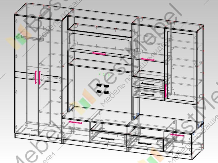 Гостиная Приса BMS легка для восприятия, а значит, она не утяжелит своим присутствием интерьер. Её красивое исполнение украсит любую гостиную и наполнит её настоящим уютом. В этом ей помогут декорированные фасады, модная расцветка и притягательное расположение отделов. Пришло время поговорить и о вместительности! Как видите, модель укомплектована распашным объёмным шкафом для гардероба. Сюда же входят многоцелевые выдвижные ящики, полки, тумбы. Малогабаритные принадлежности, уж точно, будут в целости и сохранности. Купить гостиную Приса BMS можете в нашем магазине по низкой стоимости.