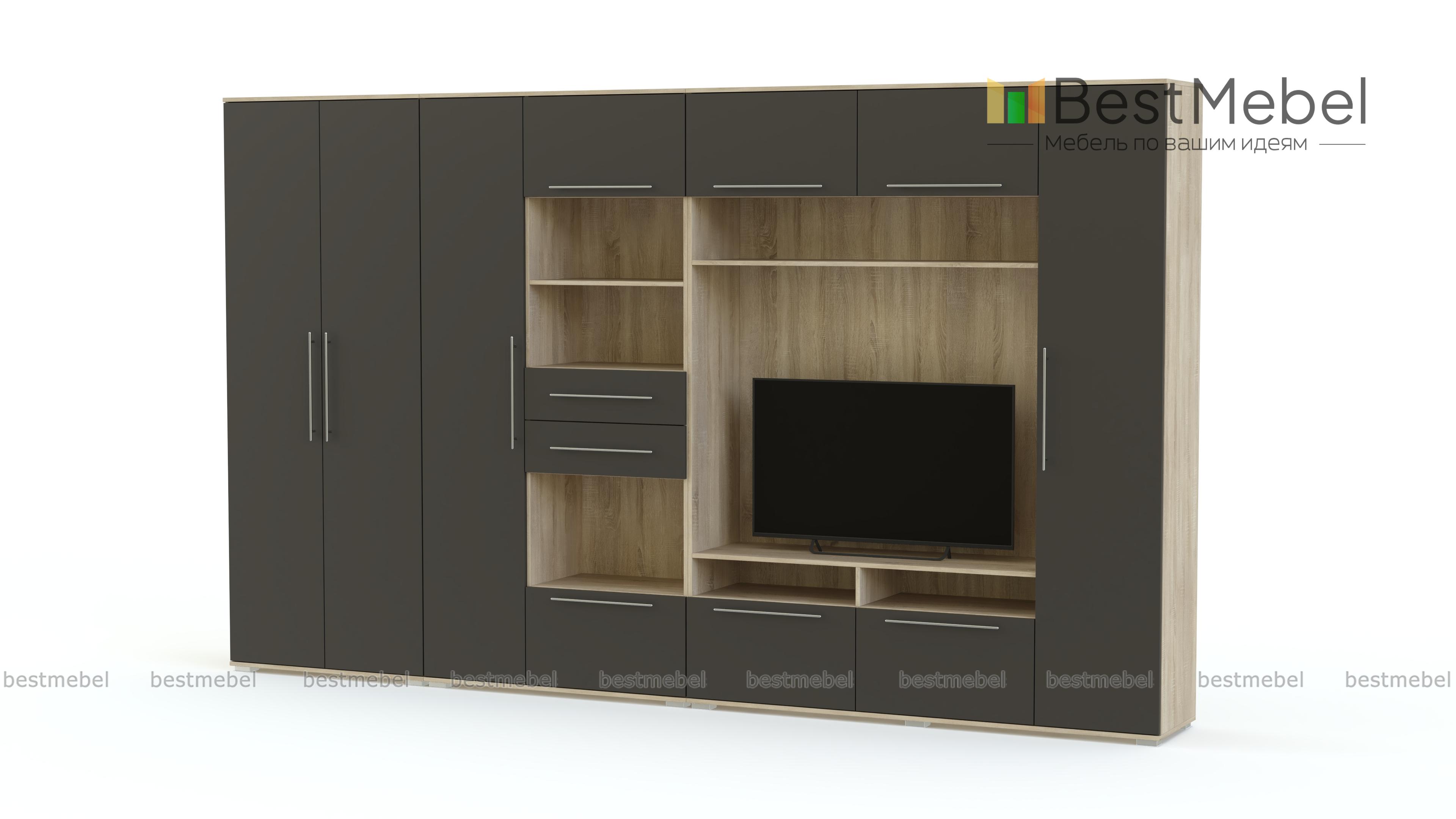 Гостиная Tomas BMS порадует поклонников ярких современных дизайнов стильным минимализмом и функциональностью. Практичная модель включает в себя все необходимое для размещения предметов гардероба, книг, аппаратуры, интерьерных украшений и множества мелочей. В комплект входят распашной шкаф, пеналы, комбинированная с выдвижными ящиками колонка, тумба под ТВ и антресольная полка. Цветные матовые фасады надолго сохранят эстетичный вид благодаря износостойкости и простоте ухода. Купить гостиную Tomas BMS вы сможете в нашем интернет-магазине по отличной цене.