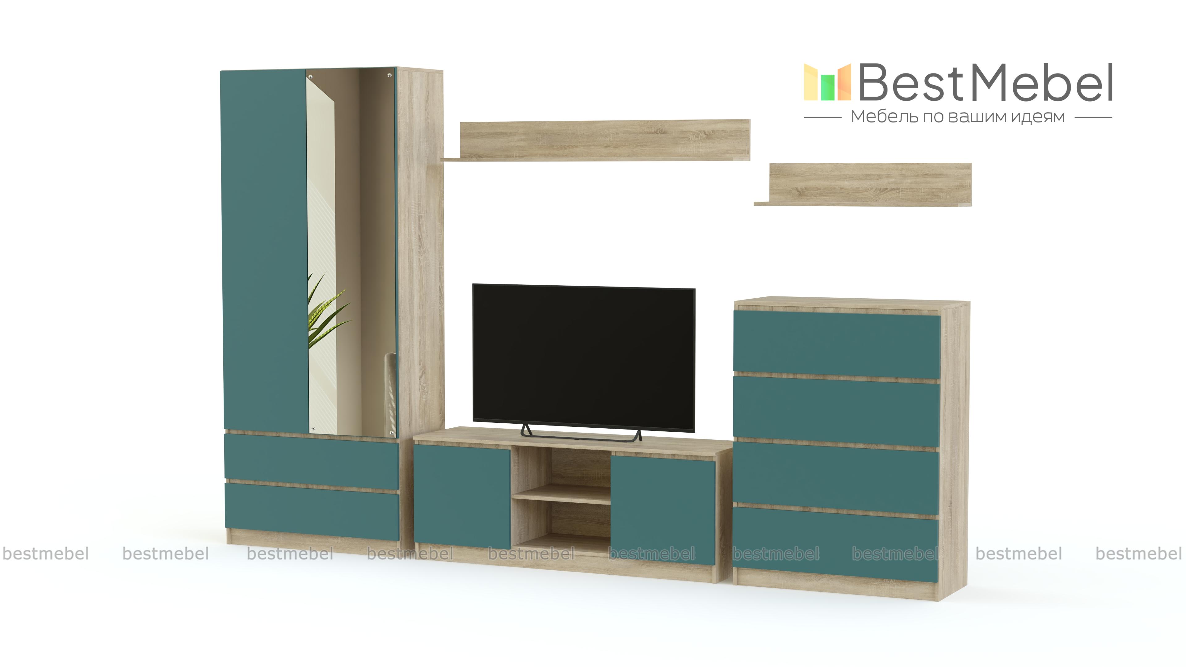 Гостиная Форте 6 BMS – это пять практичных модулей, которые дополнят современные интерьеры в стиле минимализм и хай-тек. Модель отличают лаконичность, функциональность и характерное цветовое решение – матовые текстуры и контрастные цвета. В комплект входят комбинированный с ящиками двухдверный шкаф, низкая тумба под ТВ, вместительный комод и две навесные открытые полки. Дверцы без ручек могут быть оснащены эргономичной системой открывания легким нажатием на фасад. Купить гостиную Форте 6 BMS по демократичной цене вы сможете в нашем интернет-магазине.