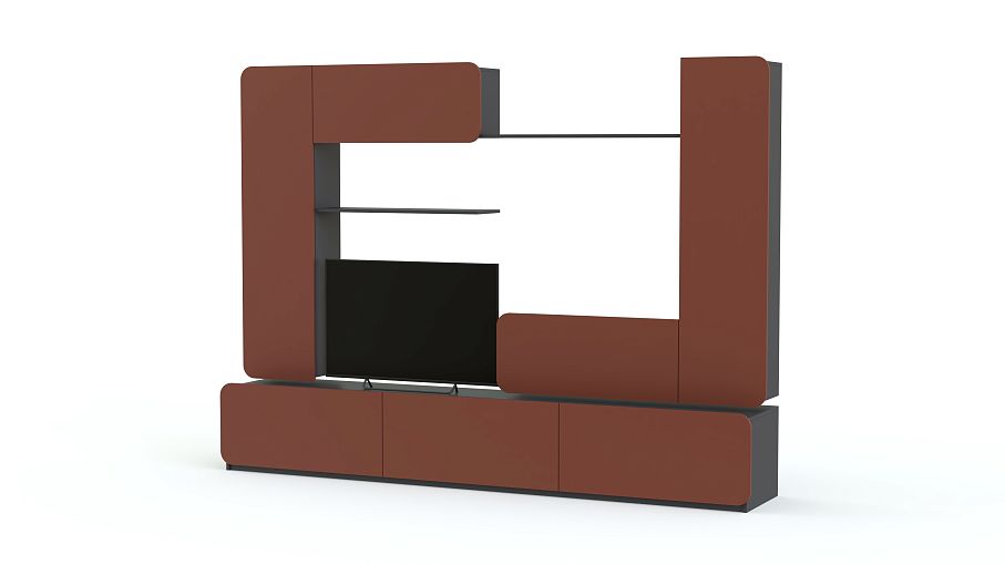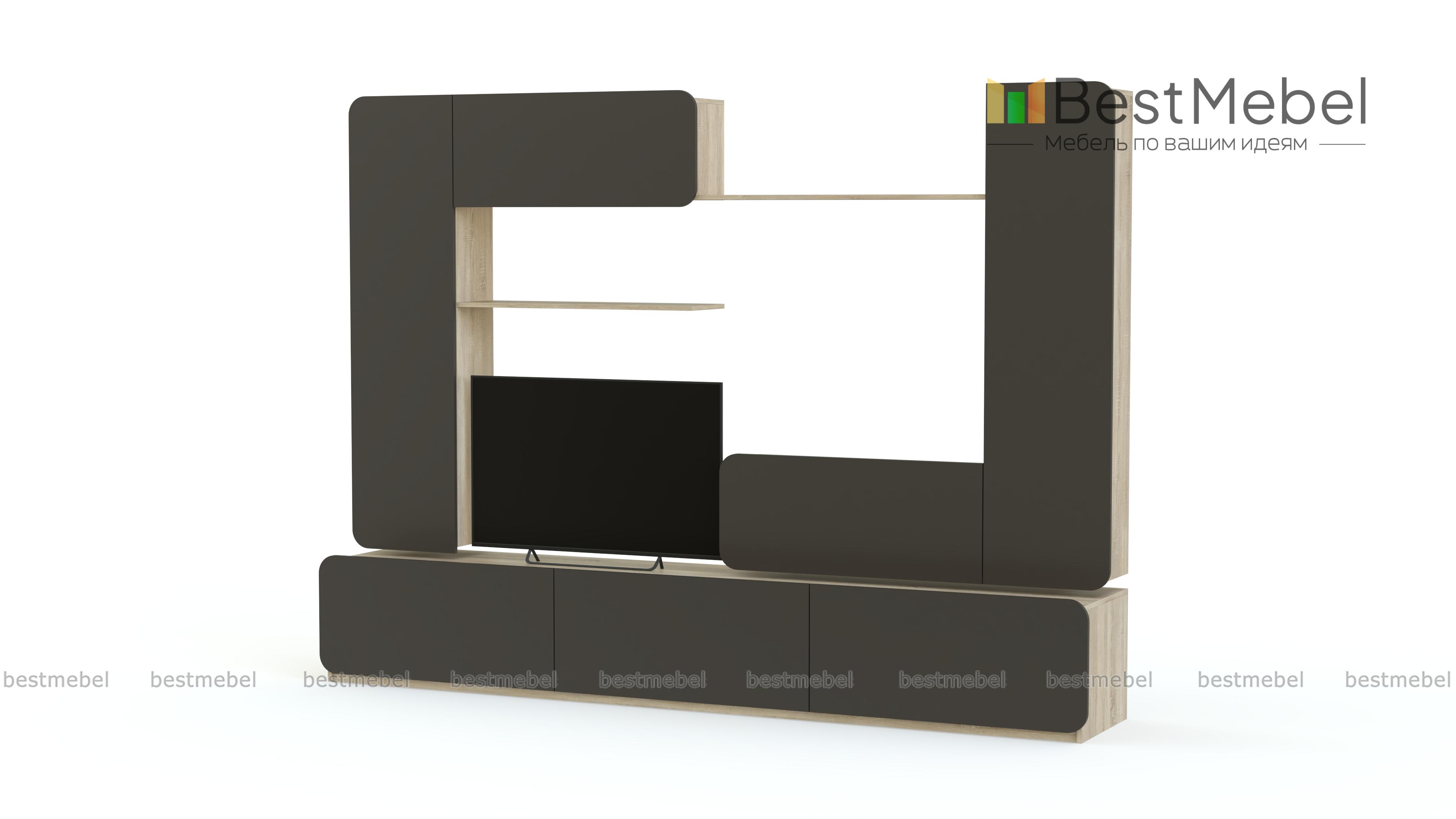 Стенка Модерно 7.1 BMS отличается практичной модульной конструкцией, благодаря которой вы сможете подобрать идеальный вариант для интерьера. Стенка состоит из нескольких элементов – напольной низкой тумбы с тремя ящиками, навесных пеналов с распашными дверцами, навесных шкафчиков с откидными дверцами и открытой полки для предметов декора, книг и мелочей. Вместительные ящики и открытые поверхности позволят удобно разместить множество вещей. Купить стенку Модерно 7.1 BMS вы сможете по лучшей цене в нашем интернет-магазине.