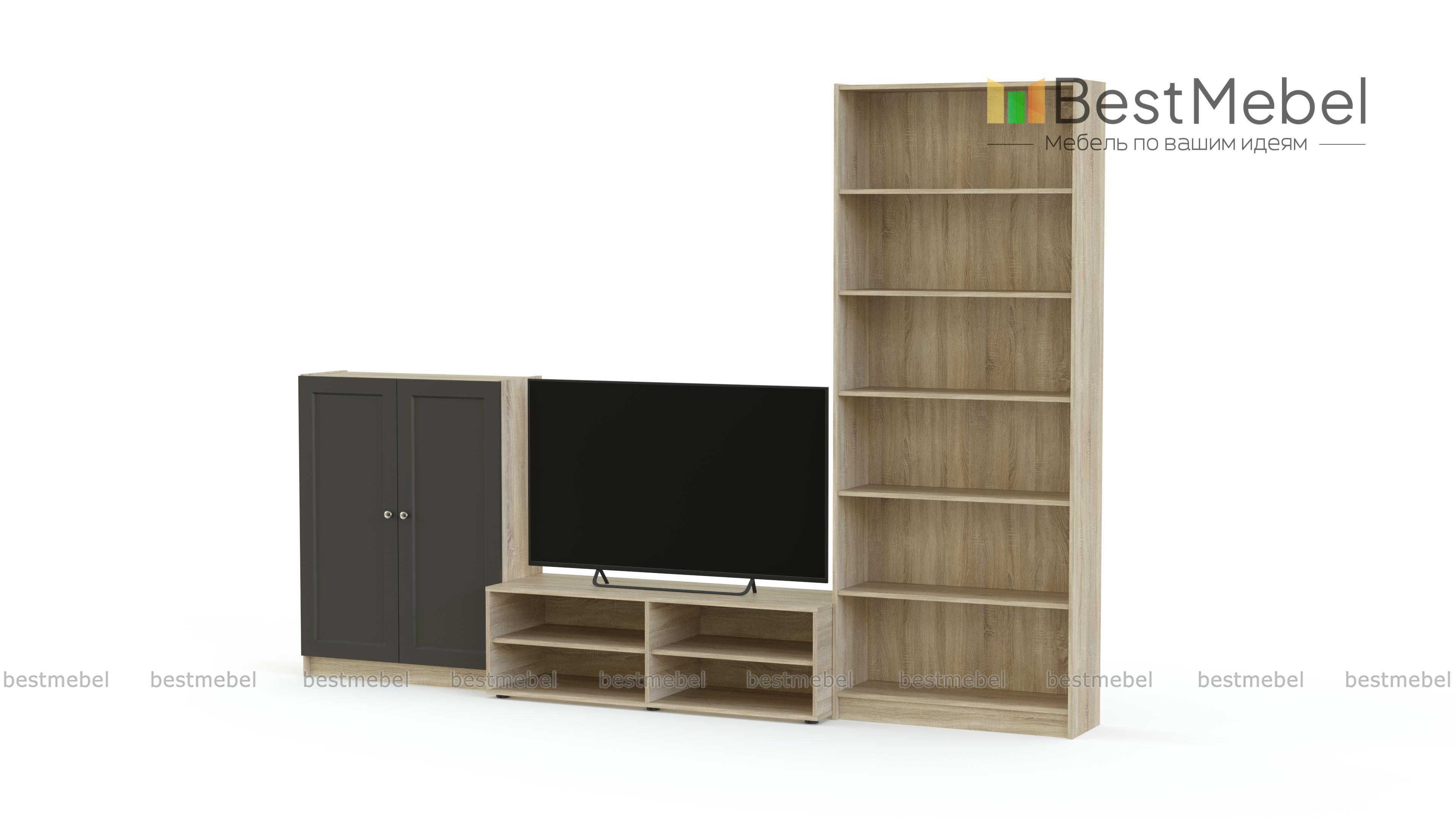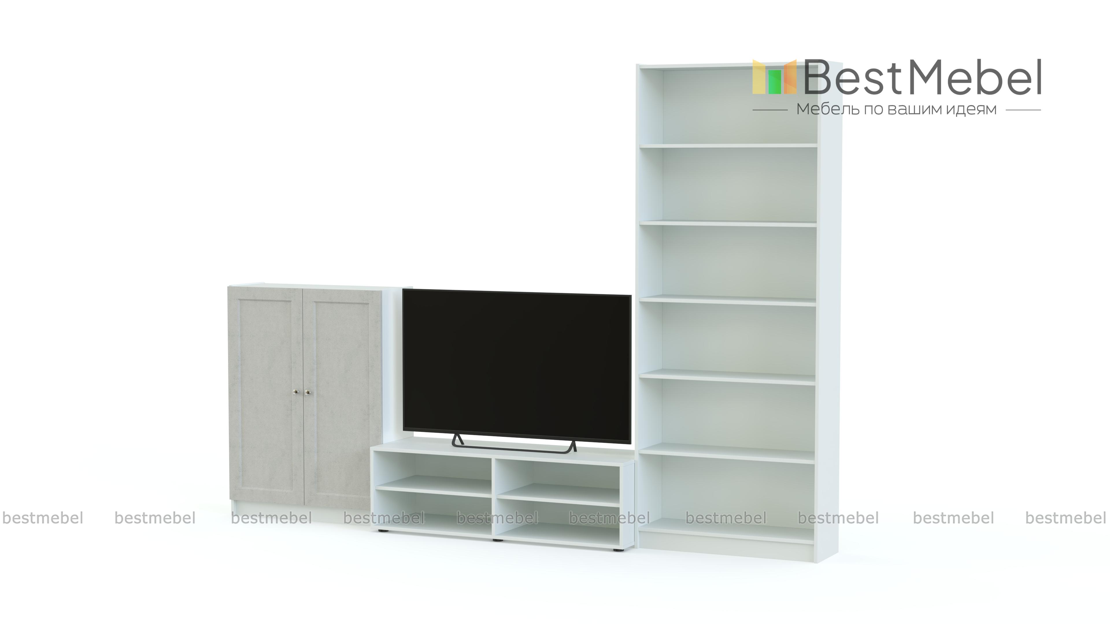 Стенка Билли Бесто Billy Besta 3 включает в себя тумбу под аппаратуру, высокую распашную тумбу и книжный стеллаж. На открытых и расположенных за глухими дверцами полках вы можете разместить все, что угодно: одежду, посуду, книги из домашней библиотеки и любимый декор. Простые функциональные модули нейтрального цвета дают широкий простор для воплощения ваших идей. Купить стенку Билли Бесто Billy Besta 3 и грамотно спланировать пространство вам поможет наш интернет-магазин. Выбирайте мебель в стиле IKEA (ИКЕА) от производителя BestMebelShop!