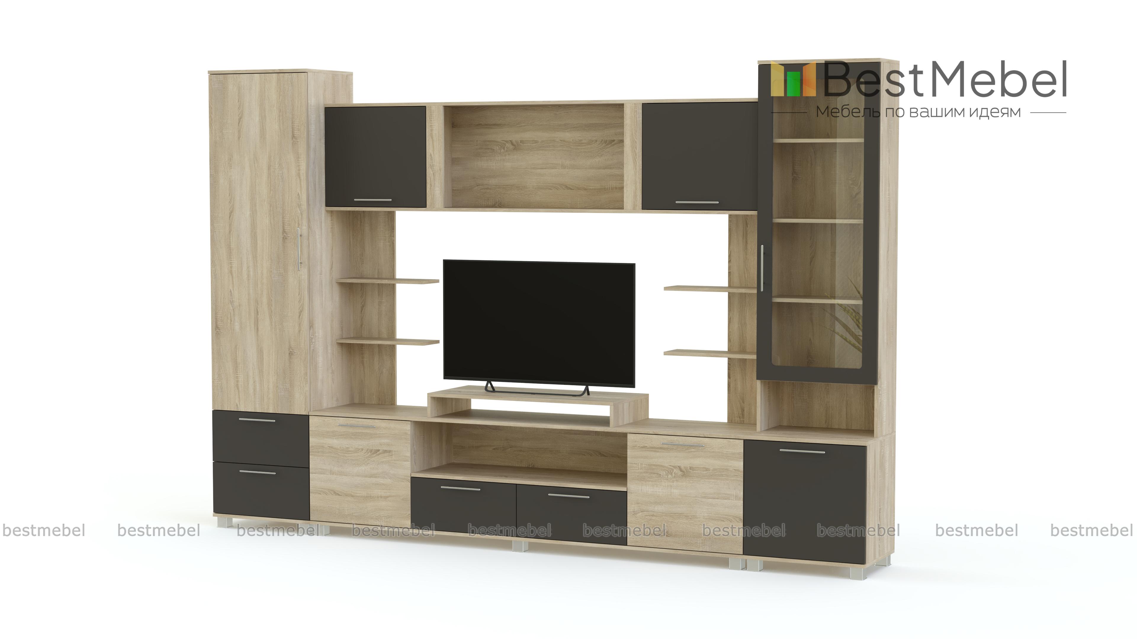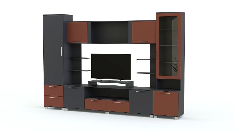 Стенка Равелло 2 глянец BMS – это визуальная легкость, продуманная до мелочей конструкция и стильное сочетание классических темных тонов с цветными вставками. Модель, оборудованная всем необходимым для размещения аппаратуры, домашнего текстиля, книг и интерьерных украшений, позволит сэкономить на лишней мебели. В составе композиции тумба под ТВ, комбинированные колонки, мини-стеллажи и просторная антресольная секция. Купить стенку Равелло 2 глянец BMS приглашаем в наш интернет-магазин, подобрав необходимые параметры.