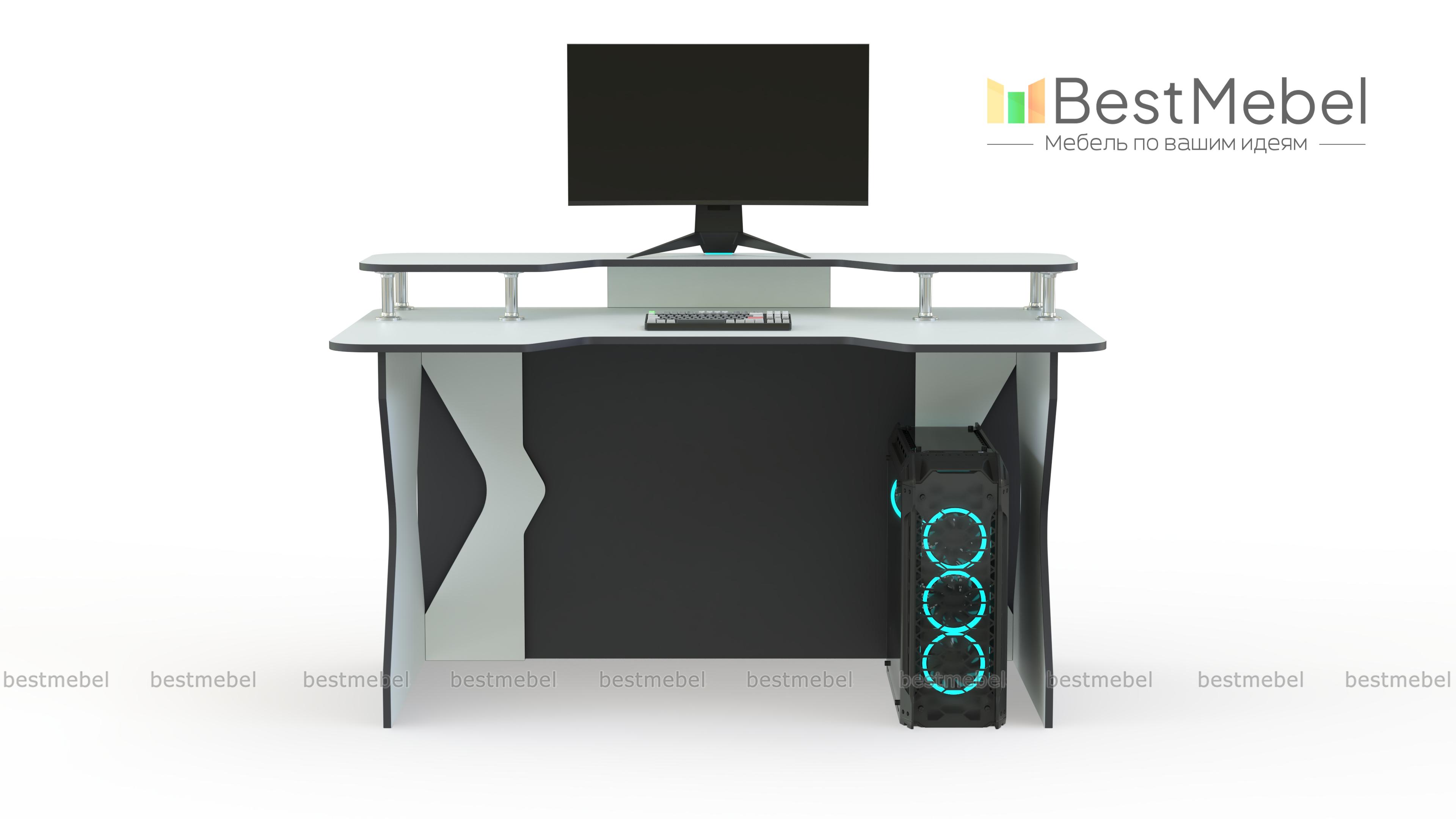 Игровой стол Персей тип 5 BMS с эффектно вырезанными боковинами и задней стенкой гармонично впишется в современные интерьеры. Прямая модель оборудована просторной столешницей с трапециевидной выемкой и надстройкой, на которой разместятся монитор и необходимые периферийные устройства. Креативный дизайн модели подчеркнет микс синего цвета и контрастной белой кромки. Купить игровой стол Персей тип 5 BMS и создать эргономичное пространство вам поможет наш интернет-магазин.