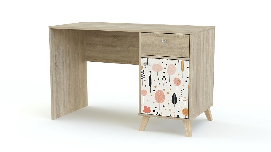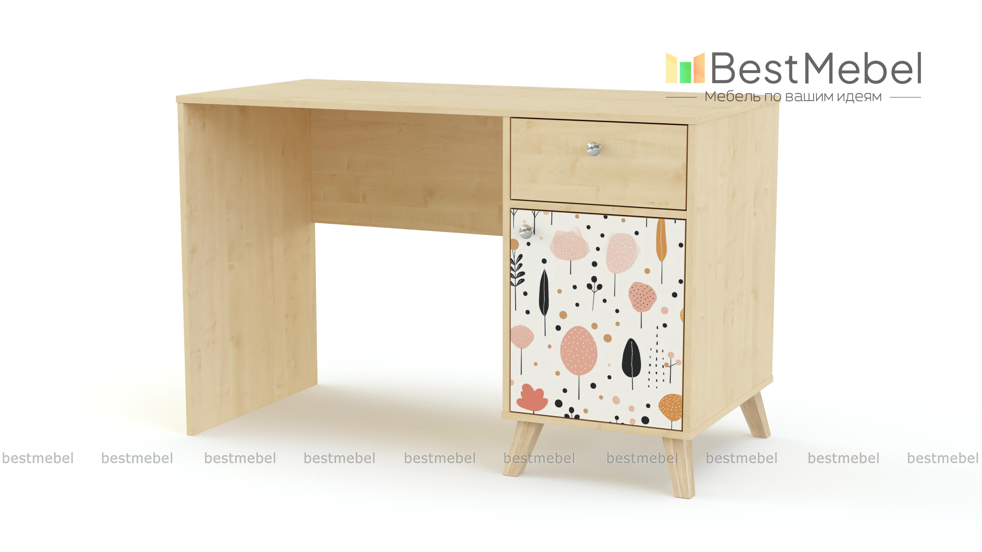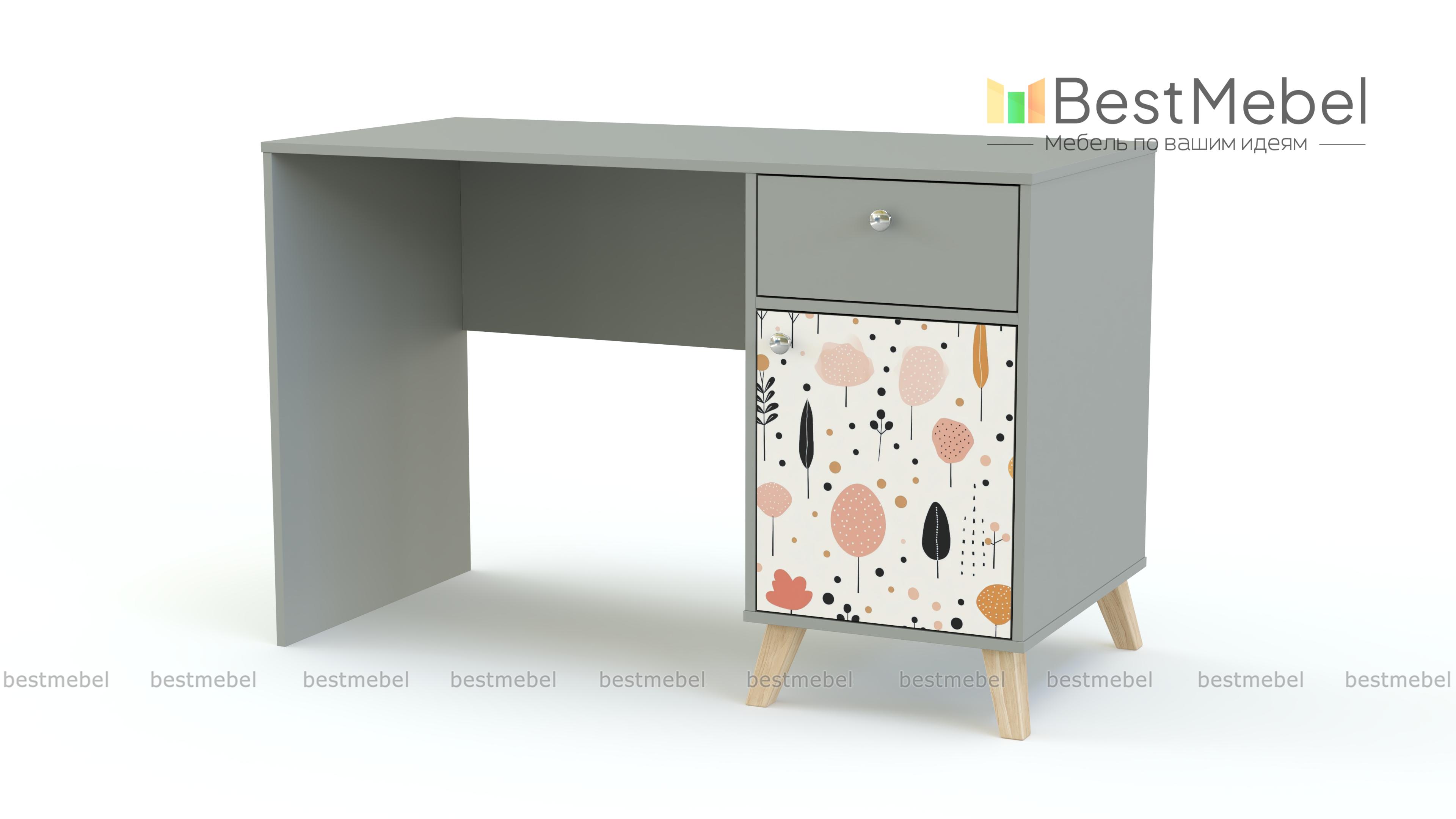 Стол письменный Эльза 4 BMS подходит для учебы, игр и творческих занятий. Комфортной модель делают широкая столешница, на которой хватит места для письменных принадлежностей и монитора, и вместительная тумба с ящиком и распашным отделением. Дизайн с фотопечатью и сканди-ножками прекрасно вписывается в пространство современной детской комнаты. Купить стол письменный Эльза 4 BMS вы сможете в нашем интернет-магазине, подобрав размеры, цвет и фурнитуру.