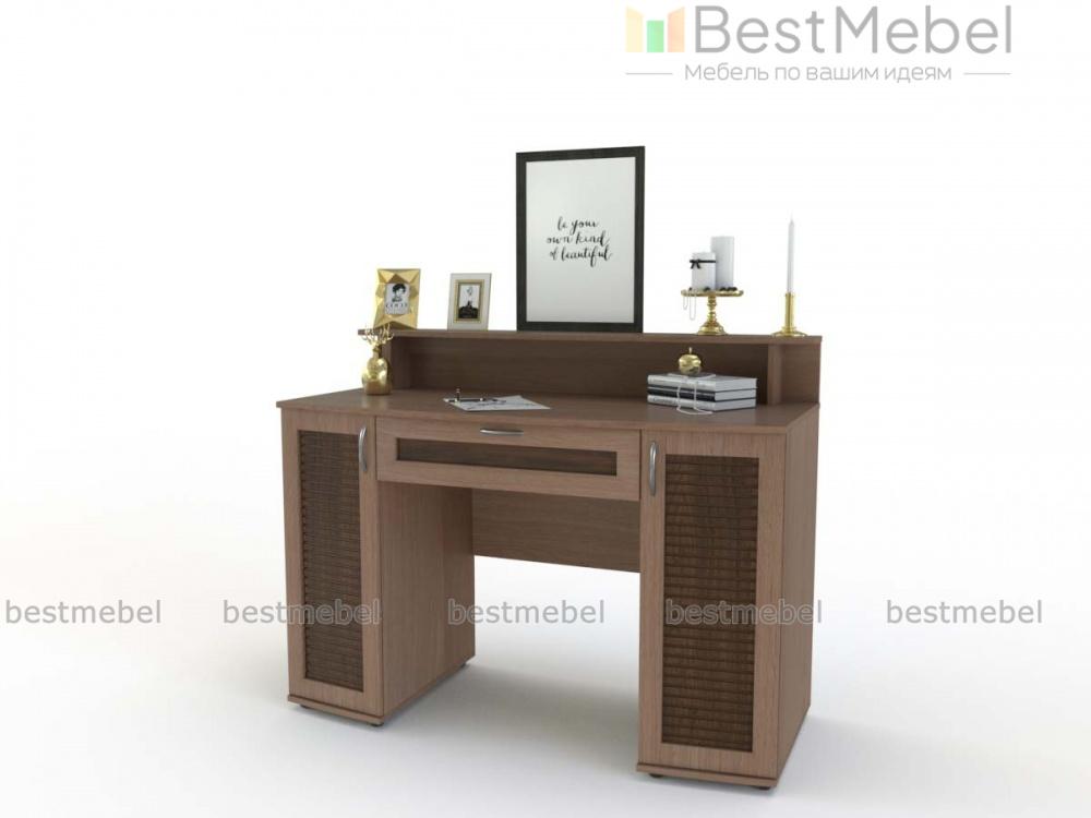 Туалетный стол Магнус 5 BMS гармонично дополнит интерьер современной спальни и поможет разместить под рукой все необходимые уходовые средства. Модель оборудована двумя распашными тумбами, выдвижным ящиком для мелочей, а столешницу эргономичной формы дополняет надстройка с полочкой, к которой крепится зеркало, и нишей. Выполненные в древесных тонах рамочные фасады декорированы вставками контрастного цвета. Купить туалетный стол Магнус 5 BMS приглашаем в наш интернет-магазин по доступной цене.