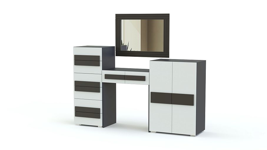 Туалетный стол Пресли 1 BMS – практичное дополнение и элемент дизайна современного спального интерьера. Эффектный геометричный столик выполнен в контрастном сочетании графитового оттенка и универсального белого. Модель оборудована всем необходимым для ухода за собой и хранения косметики, украшений и аксессуаров – двумя вместительными тумбами, столешницей, дополненной выдвижными ящиками, и зеркалом в широкой рамке. Купить туалетный стол Пресли 1 BMS по отличной цене вы сможете в нашем интернет-магазине.