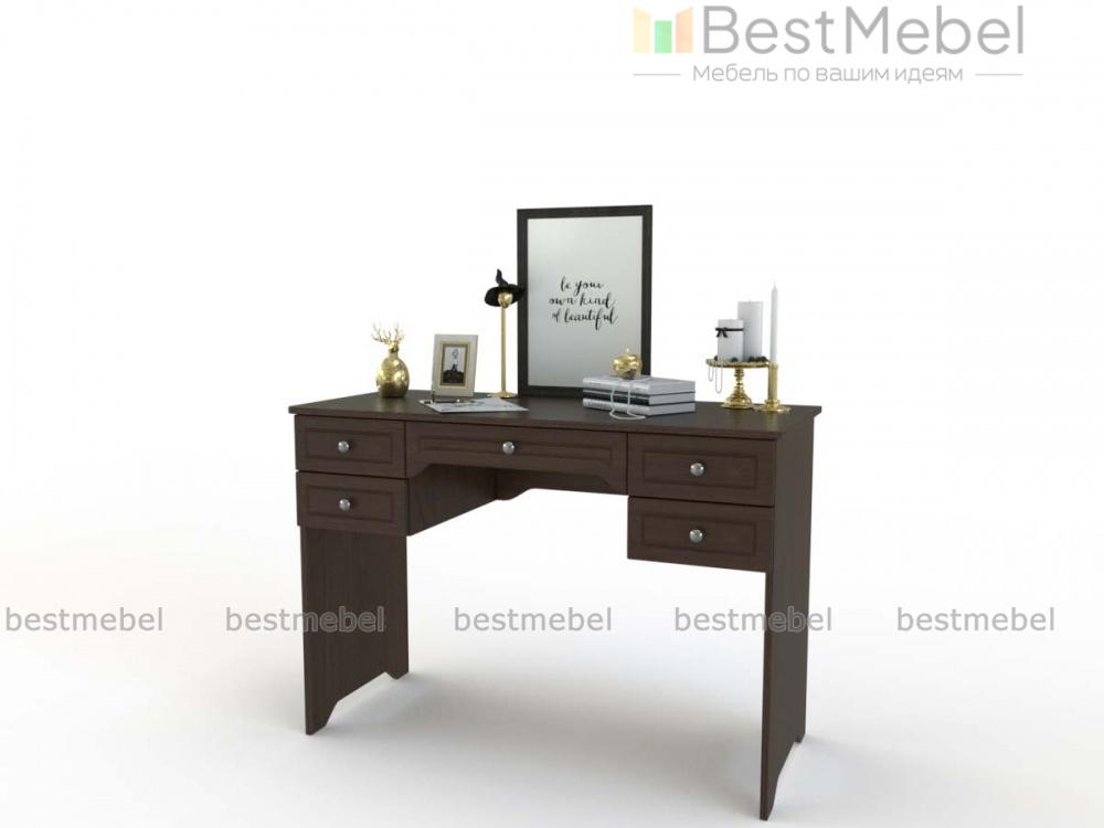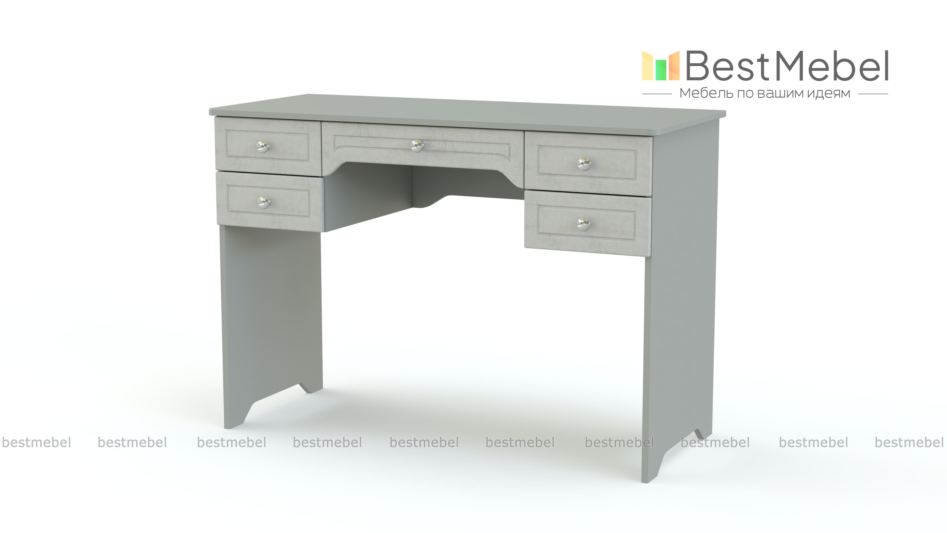 Туалетный столик Софья 2 BMS гармонично сочетает классические и современные черты. Выполненная в графитовых тонах, модель декорирована по фасаду рамочной фрезеровкой. Один большой и четыре малых выдвижных ящика помогут систематизировать хранение средств по уходу, аксессуаров, украшений и прочих мелочей. На широкой столешнице достаточно места для зеркала и предметов декора. Купить туалетный столик Софья 2 BMS для уютного спального интерьера приглашаем в наш интернет-магазин.