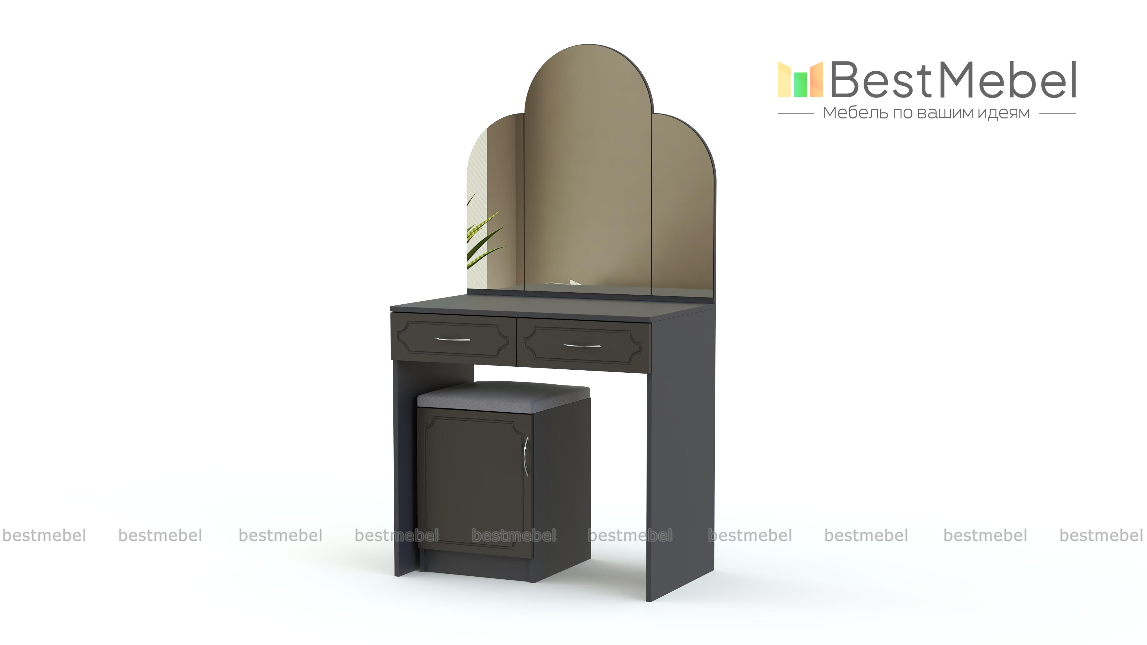 Туалетный столик Золушка BMS станет украшением спальни в классическом стиле. Прямой столик с трехстворчатым, фигурно вырезанным зеркалом, дополнен многофункциональной тумбой с мягким сиденьем, которая играет роль пуфа. Белоснежные фасады двух выдвижных ящиков и тумбы декорированы изящной рамочной фрезеровкой, эффектно сочетаясь с натуральными оттенками корпуса. Купить туалетный столик Золушка BMS для комфортного ухода за собой вы сможете в нашем интернет-магазине.