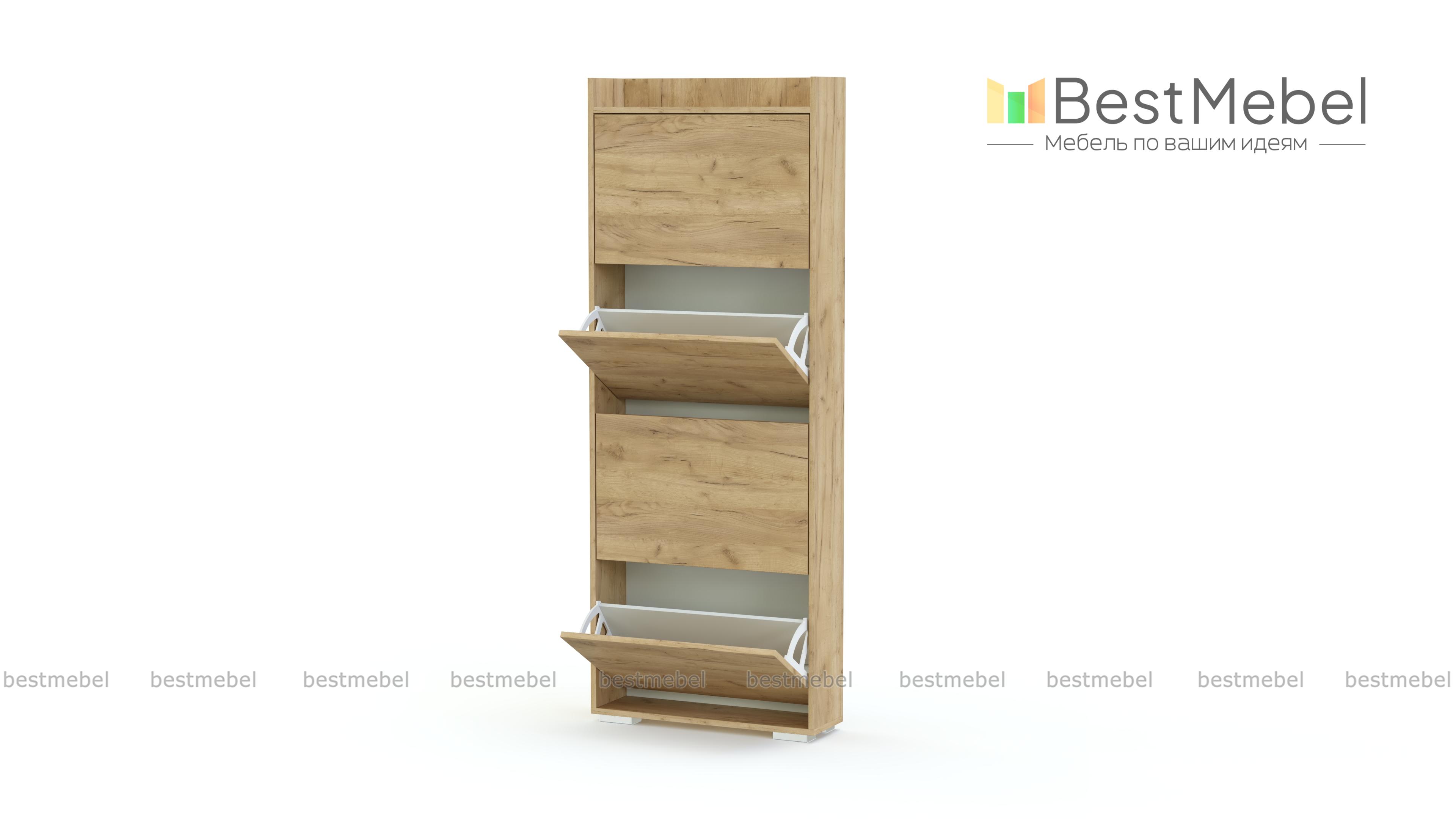 Обувница Анри 1 BMS в светлом оттенке стильно выглядит и занимает совсем немного места, что позволяет вписать ее в небольшие квартиры и студии. Система хранения тумбы включает в себя четыре откидных отделения и закрытую бортиками полку для мелочей сверху. Материал изготовления износостойкий и долговечный, ламинированные поверхности легко содержать в чистоте. Купить обувницу Анри 1 BMS в любом размере и оттенке из нашего каталога вы сможете на сайте интернет-магазина.