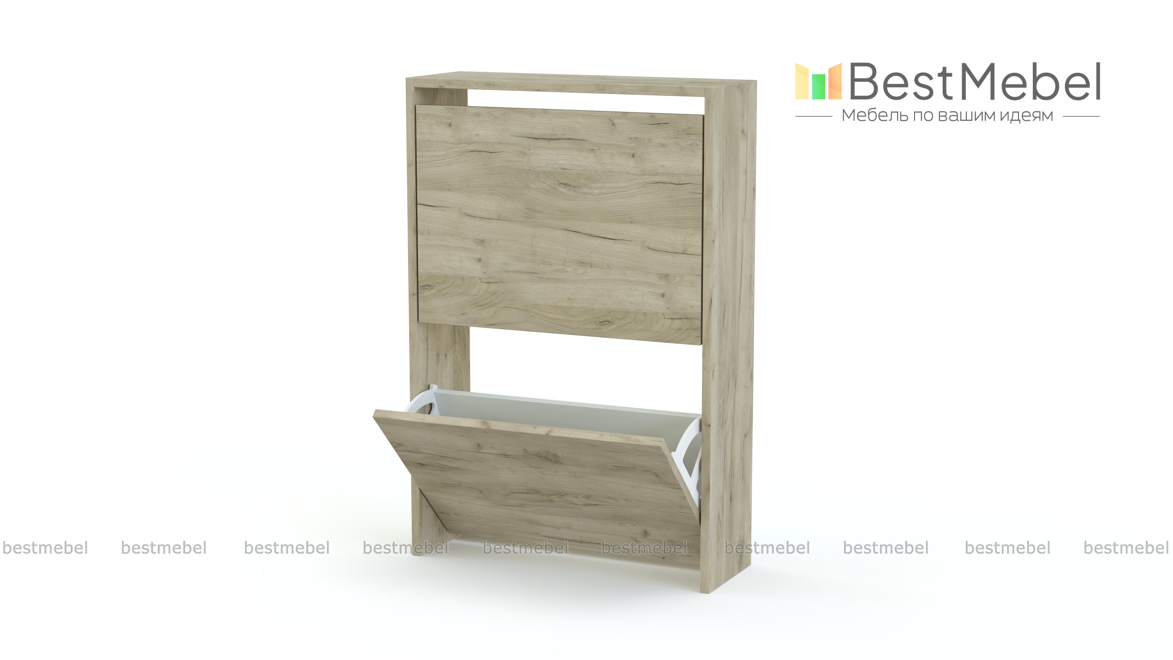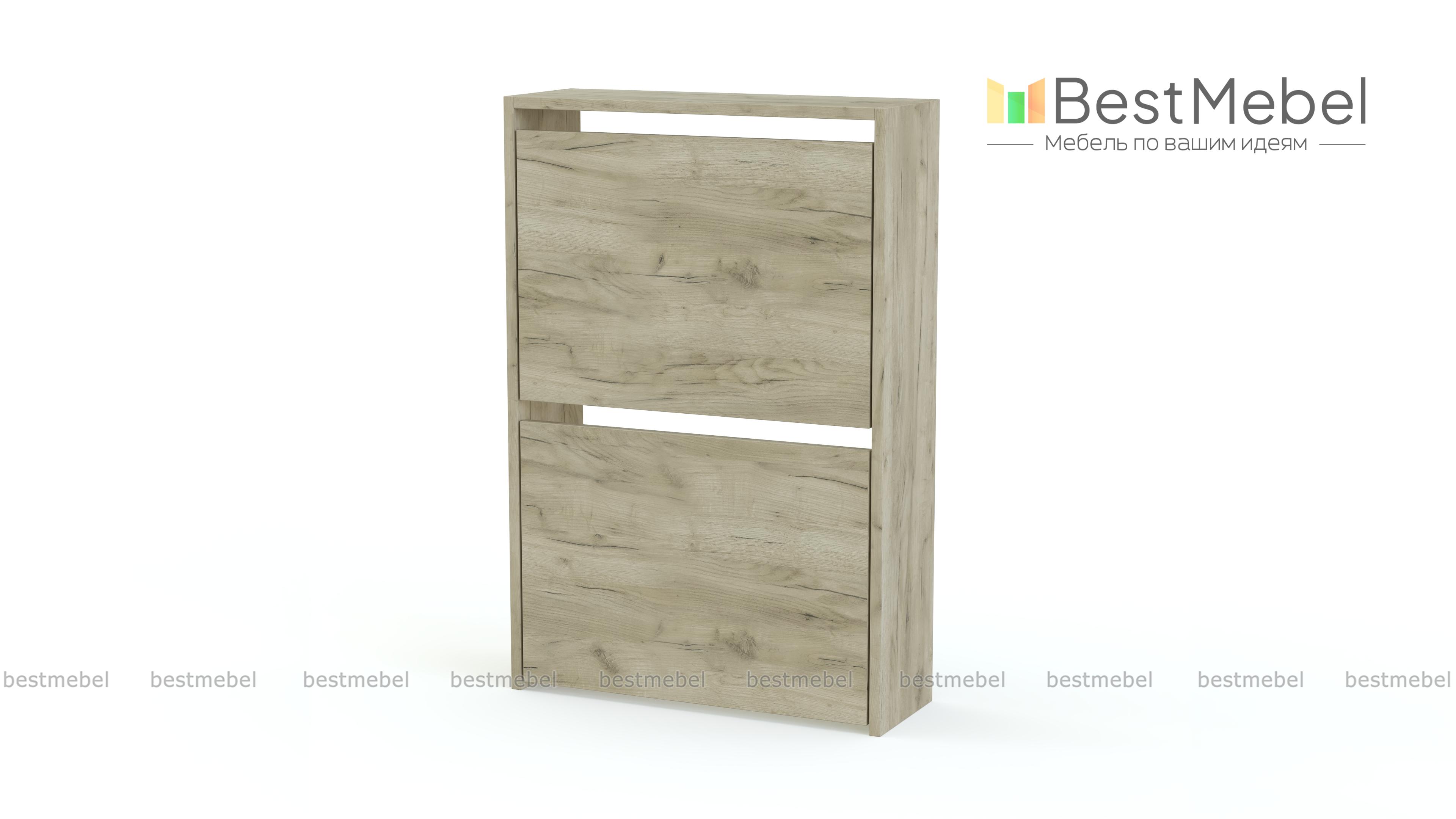 Обувница Анри 6 BMS с закрытыми фасадами поможет вам эстетично разместить обувь и средства ухода в небольшой прихожей. В двух откидных отделениях тумбы пары располагаются вертикально, занимая совсем немного места. Материал изготовления обувницы — устойчивая к действию влаги и появлению царапин ламинированная плита универсального светлого оттенка. Купить обувницу Анри 6 BMS вы всегда сможете в нашем интернет-магазине, по желанию изменив цвет и размеры.