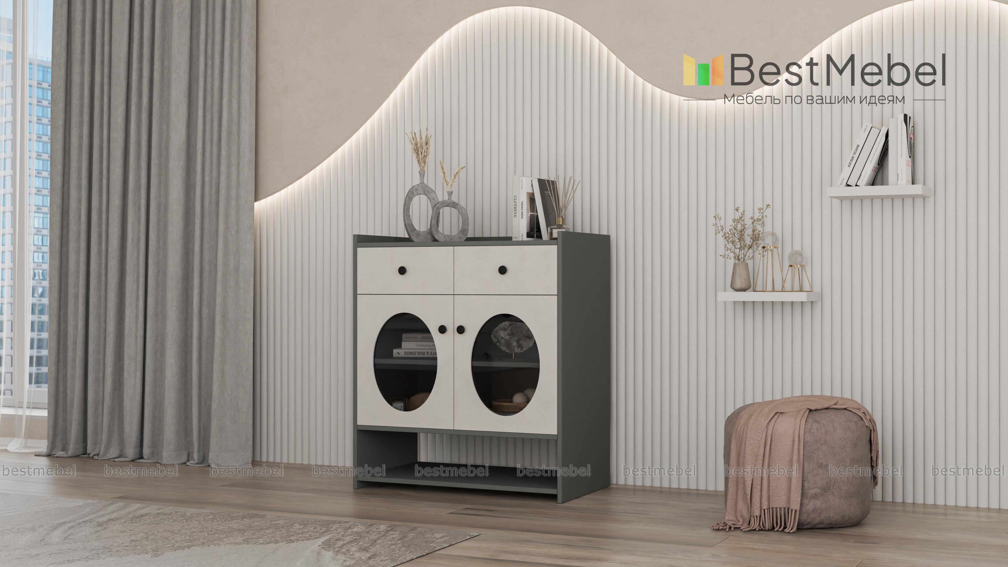 Тумба Брукс 3 BMS может использоваться отдельно или дополнять другие предметы серии для создания единого пространства. Универсальная тумба для прихожих, гостиных и спален оборудована двумя ящиками для мелочей, распашным отделением с полкой и просторной нишей внизу. Круглые вырезы со стеклом станут стильной витриной для ваших вещей, а предметы на столешнице защитят бортики. Купить тумбу Брукс 3 BMS с индивидуальным подбором размеров, цвета и фурнитуры приглашаем в наш интернет-магазин.