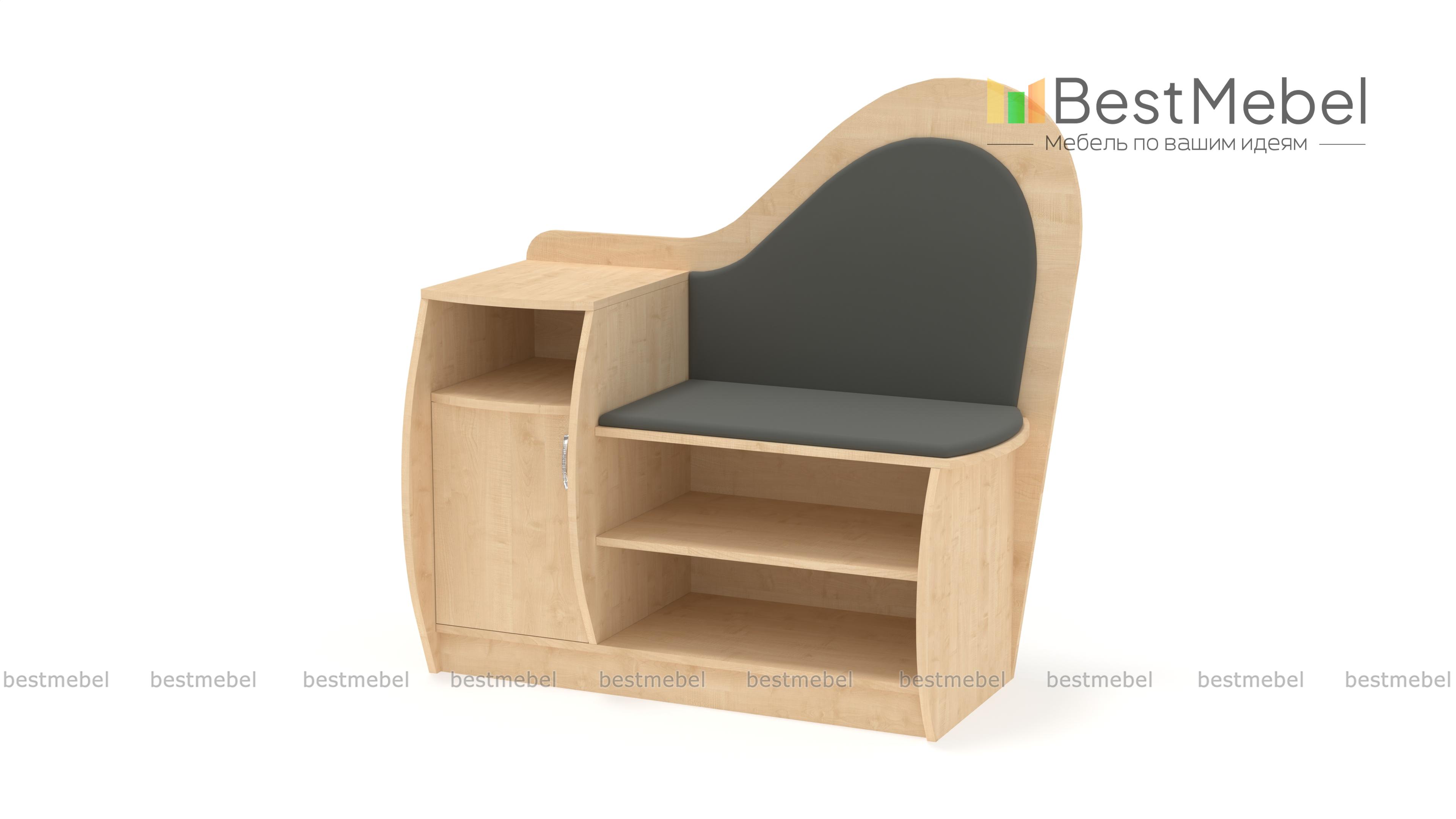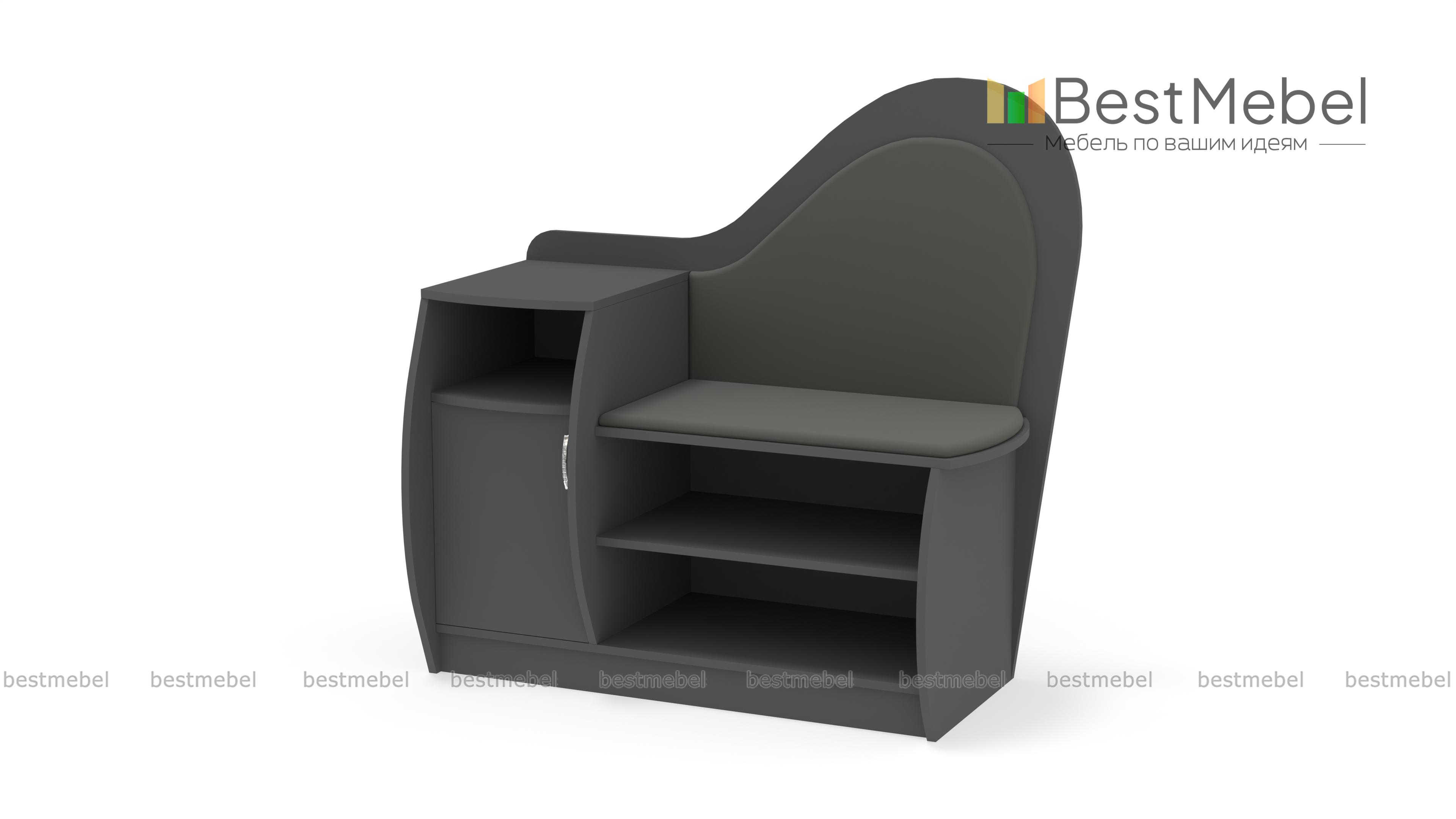 Очень красивая и удобная тумба для обуви. Выбрали цвет корпуса и обивки, а также размер, подходящие под нашу прихожую. Все изготовили в срок, аккуратно доставили и собрали.