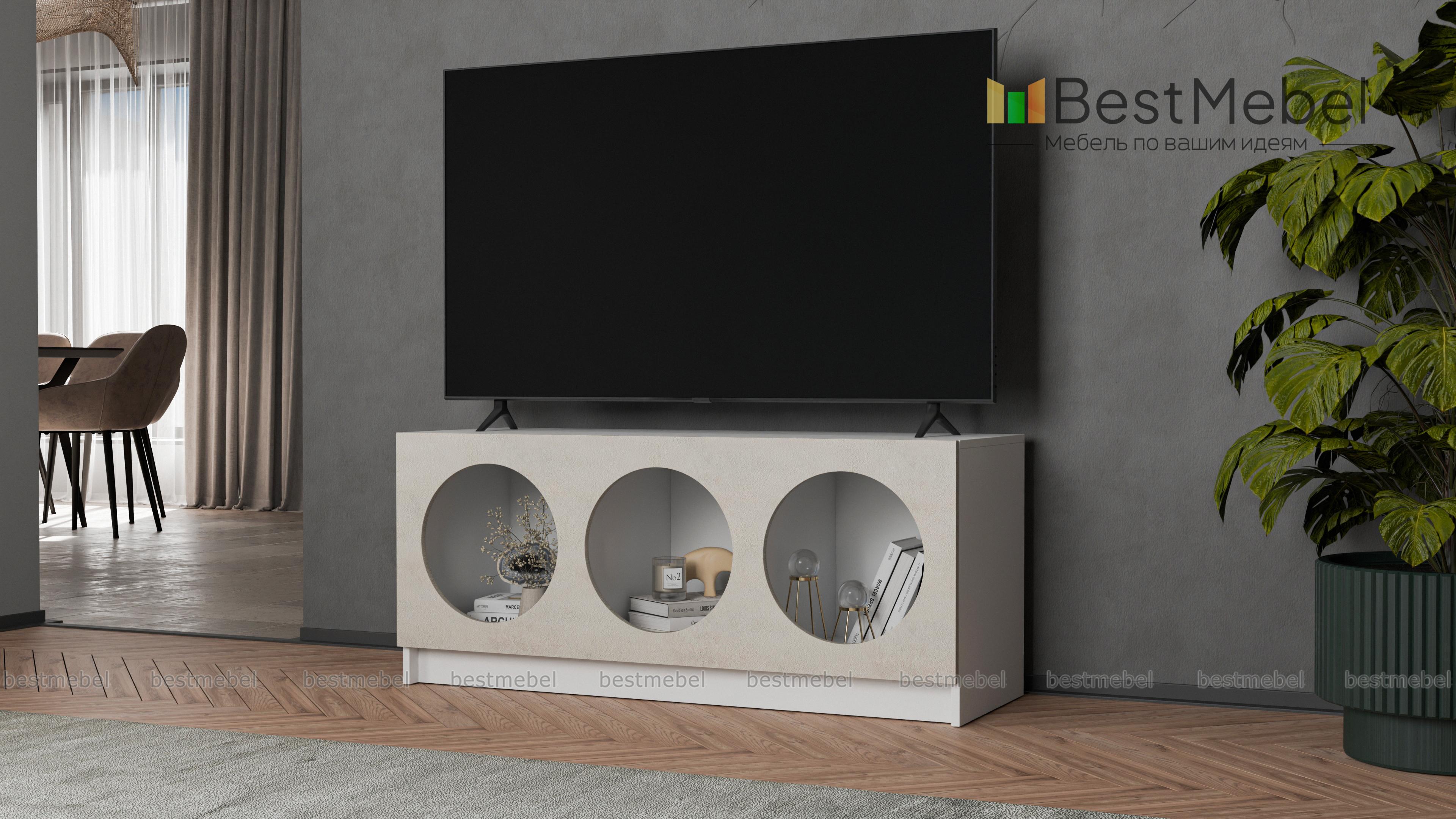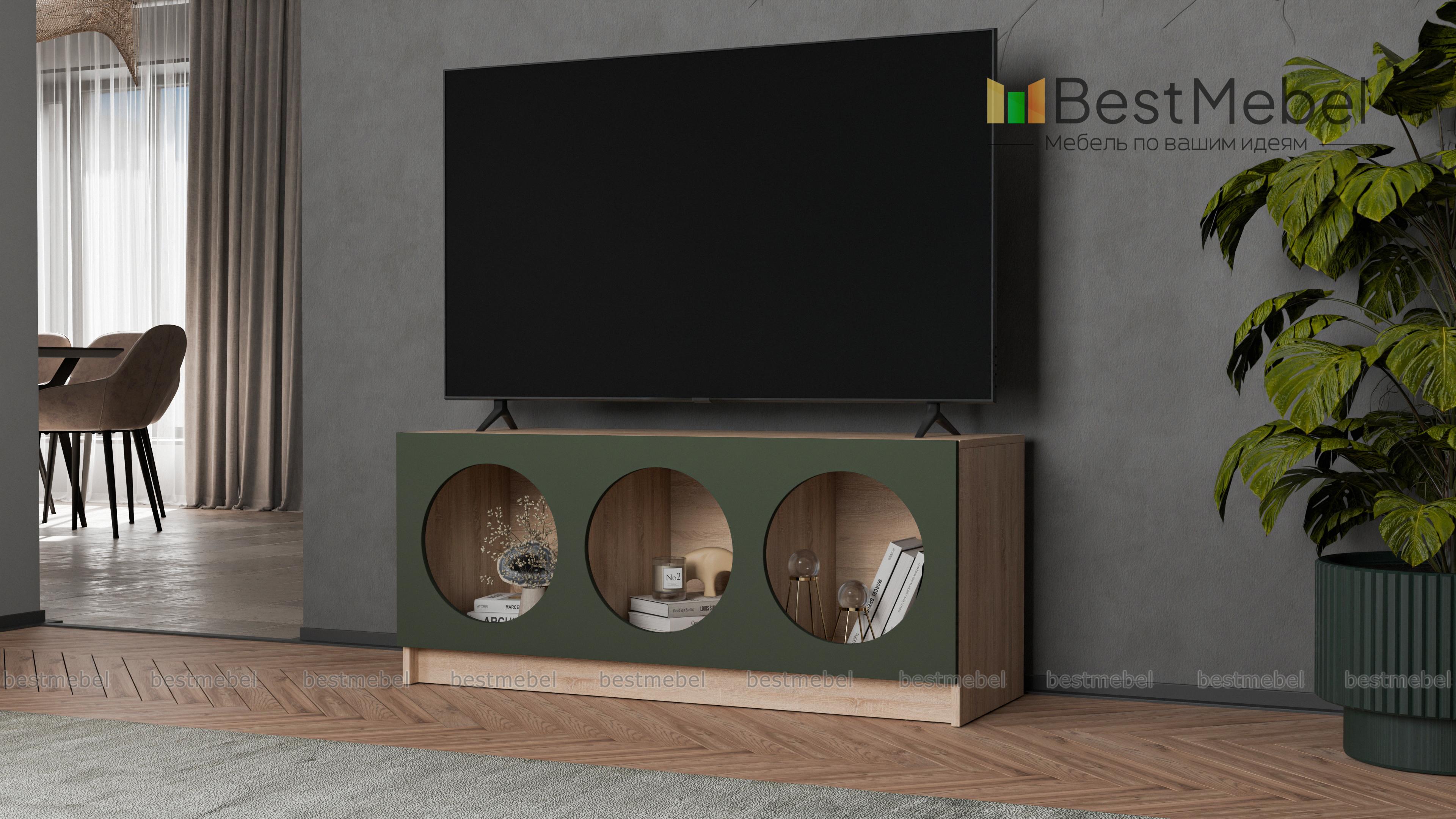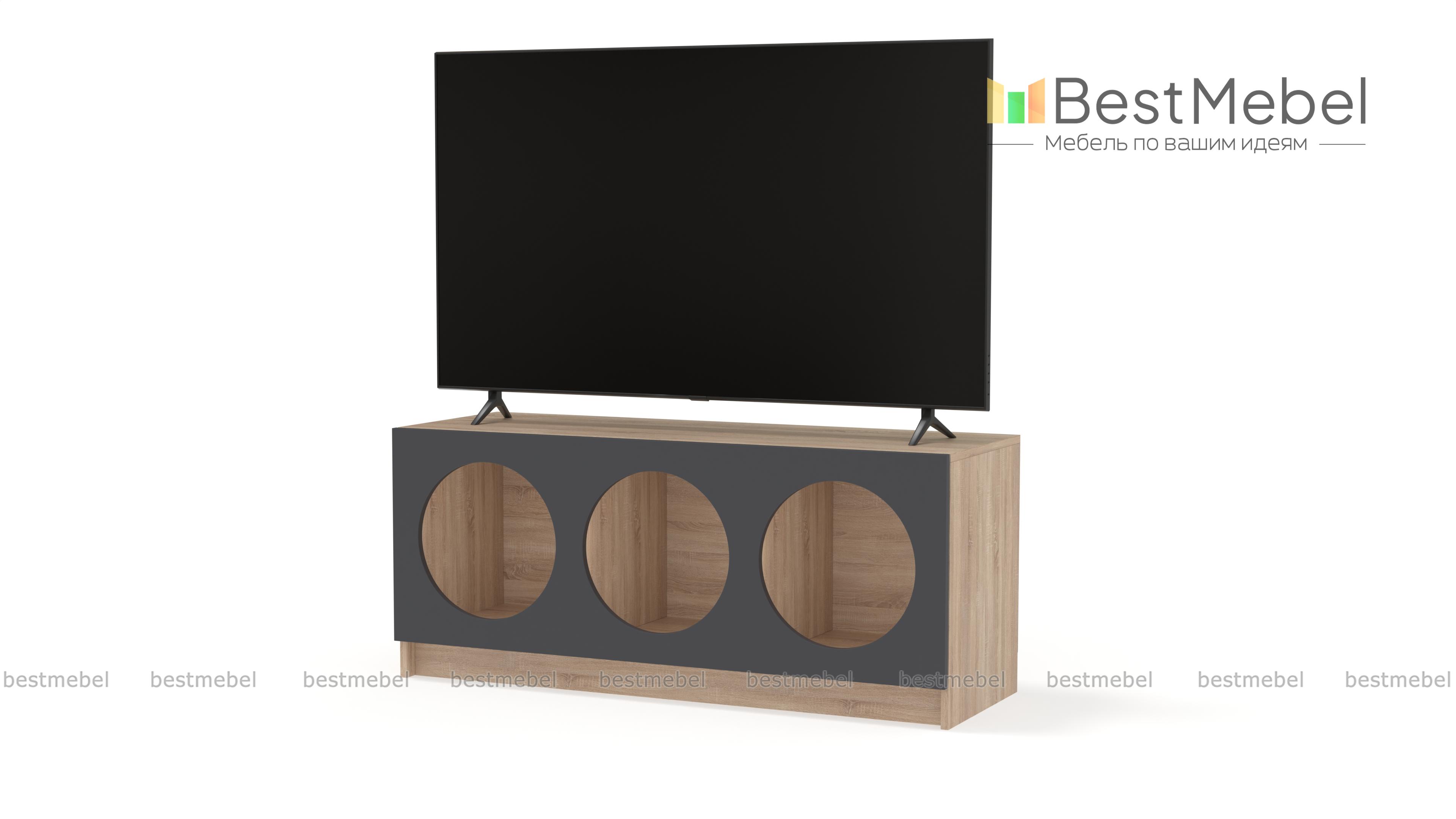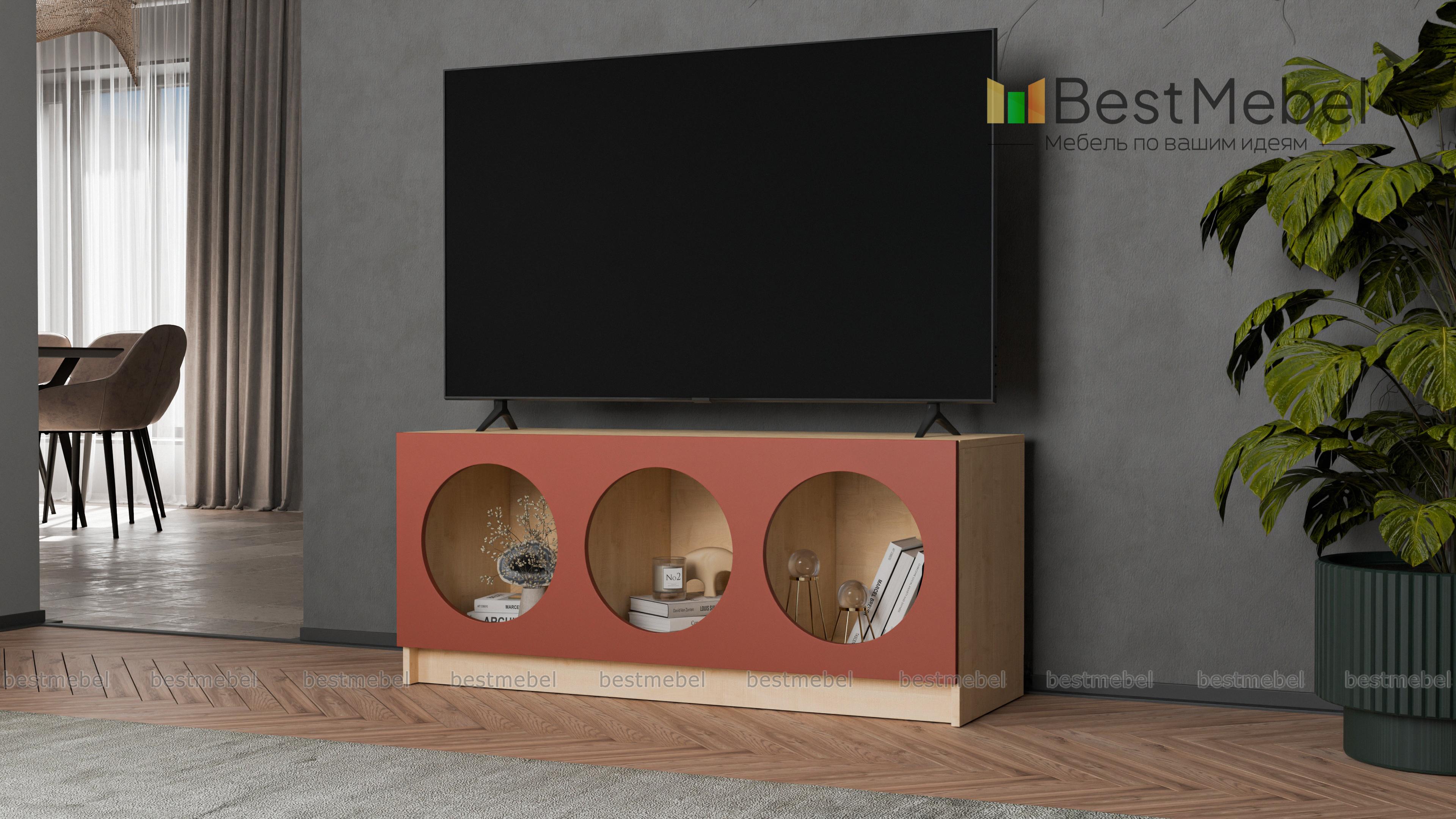 Тумба под ТВ Руди 5 BMS с цветным фасадом — компактный и стильный вариант в маленькую гостиную или комнату подростка. Вырезные круглые полки интересно представят книги, разнообразные гаджеты, интерьерные аксессуары и еще многое другое. Устойчивая конструкция с широкой столешницей оптимальна для размещения ТВ и прочей аудио- и видеоаппаратуры. Купить тумбу под ТВ Руди 5 BMS вы сможете в нашем интернет-магазине, подобрав гармонирующую с интерьером цветовую гамму.