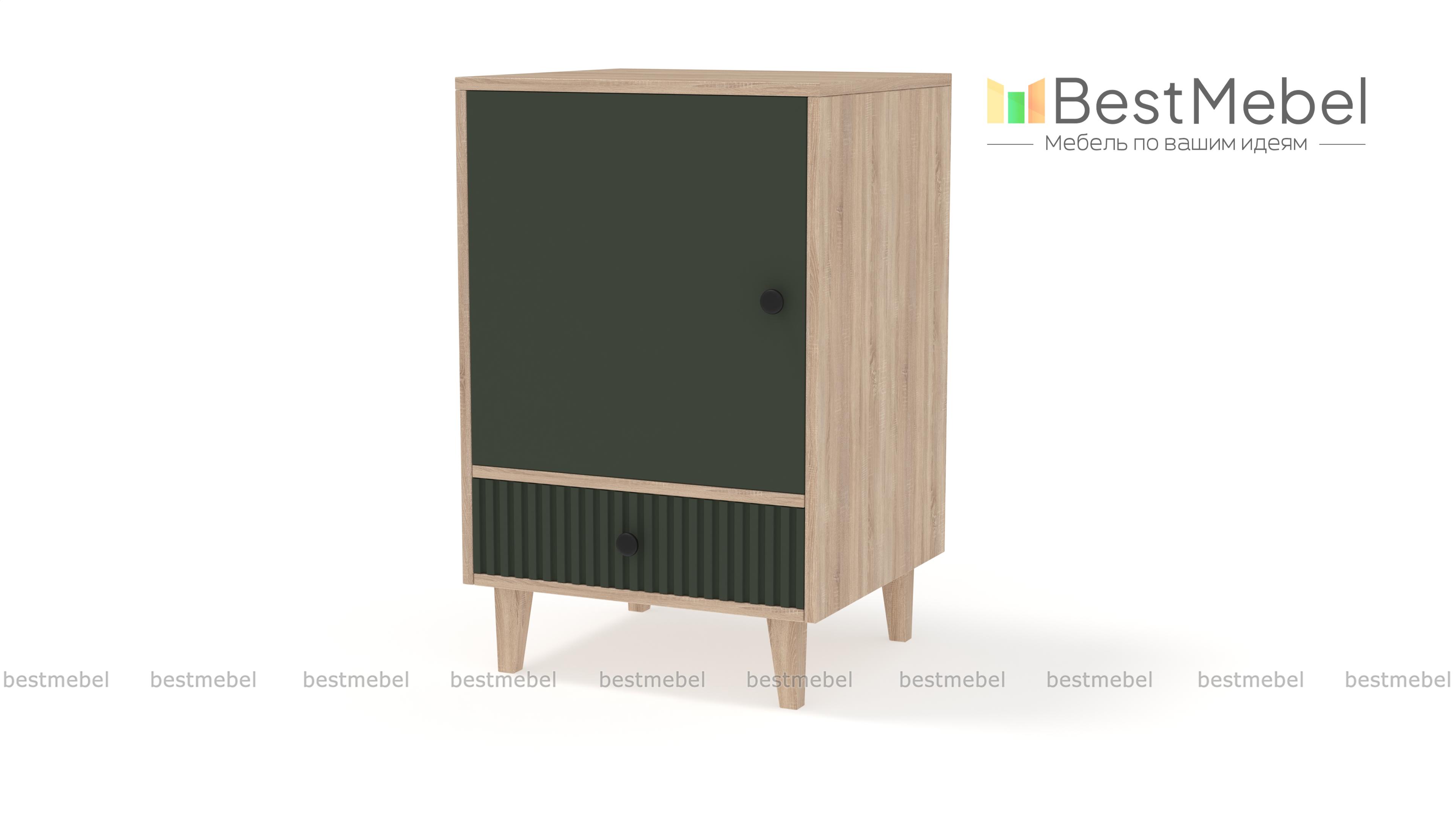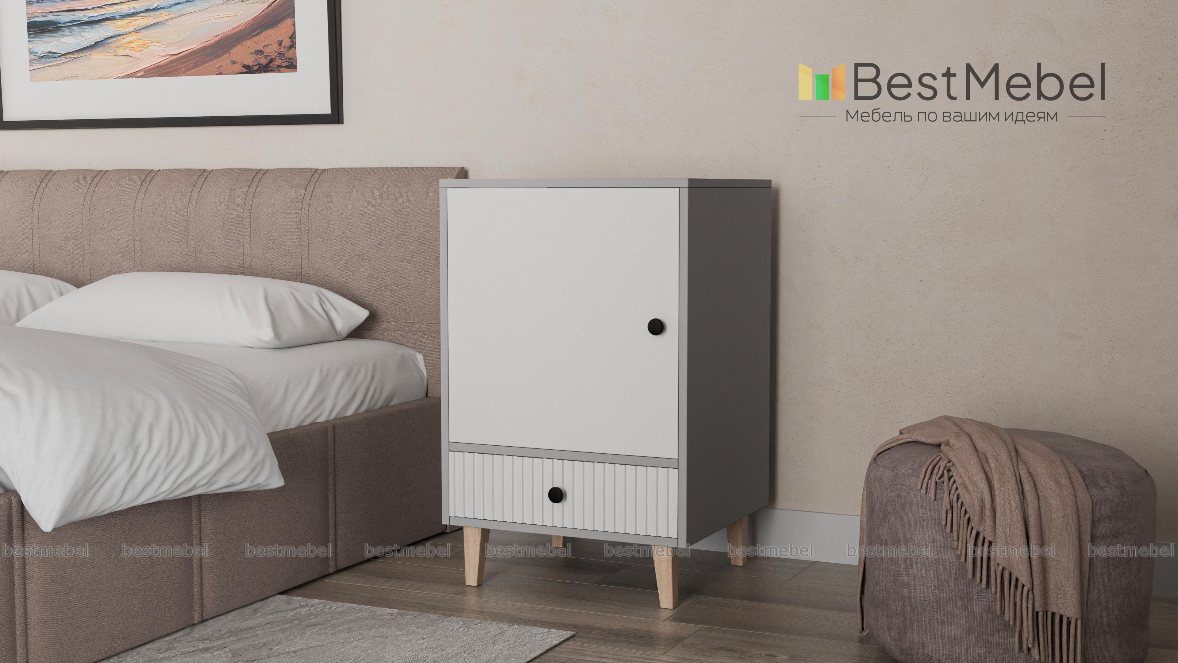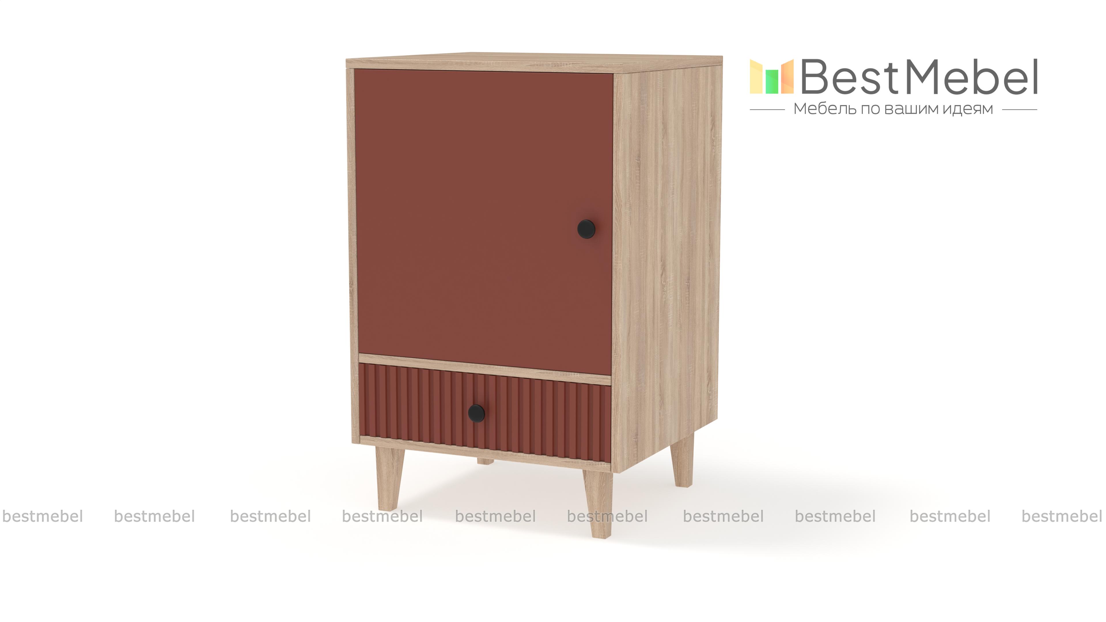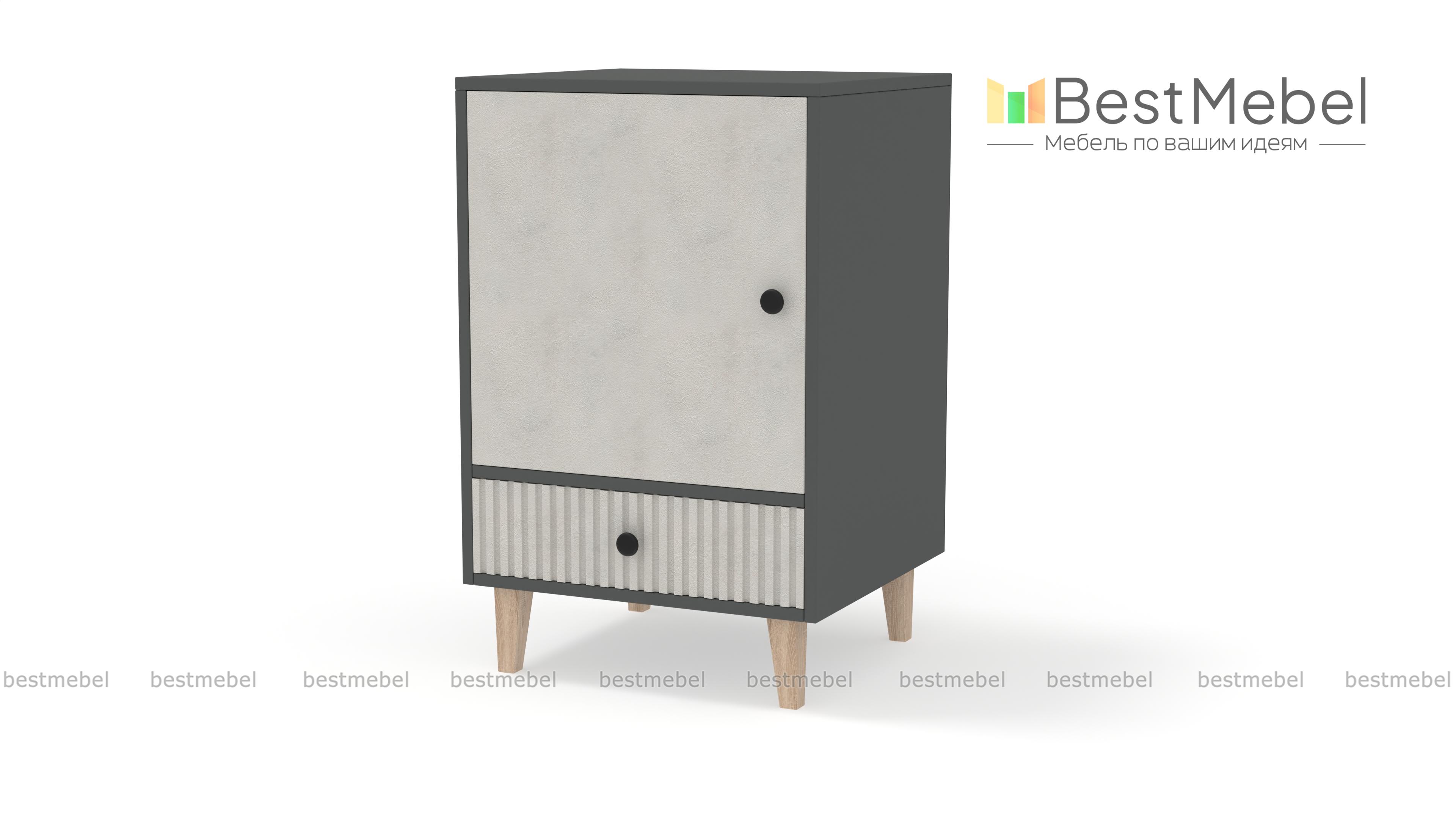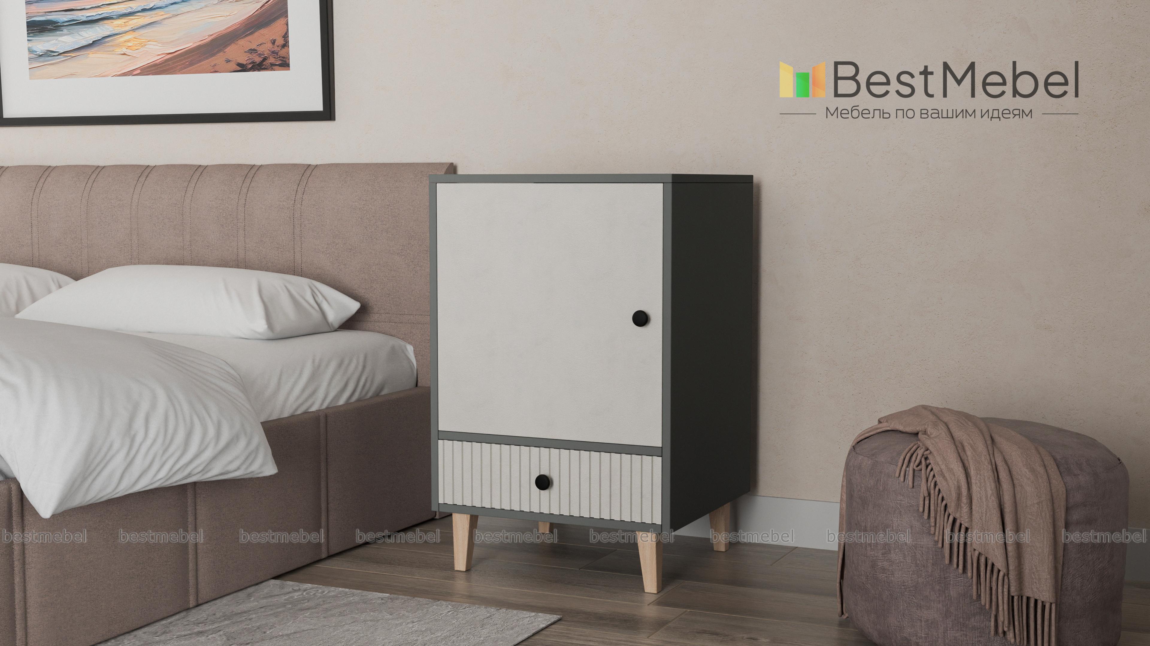 Тумба прикроватная Брукс 3 BMS создаст уютное пространство в вашей спальне или детской. Древесная отделка корпуса в сочетании с темным рельефным фасадом придает изделию современный выразительный вид. Так необходимые мелочи можно хранить на полке за глухой распашной дверцей или положить в выдвижной ящик, а столешницу дополнить светильником. Купить тумбу прикроватную Брукс 3 BMS с возможностью выбора цвета и размеров приглашаем к нам в интернет-магазин.