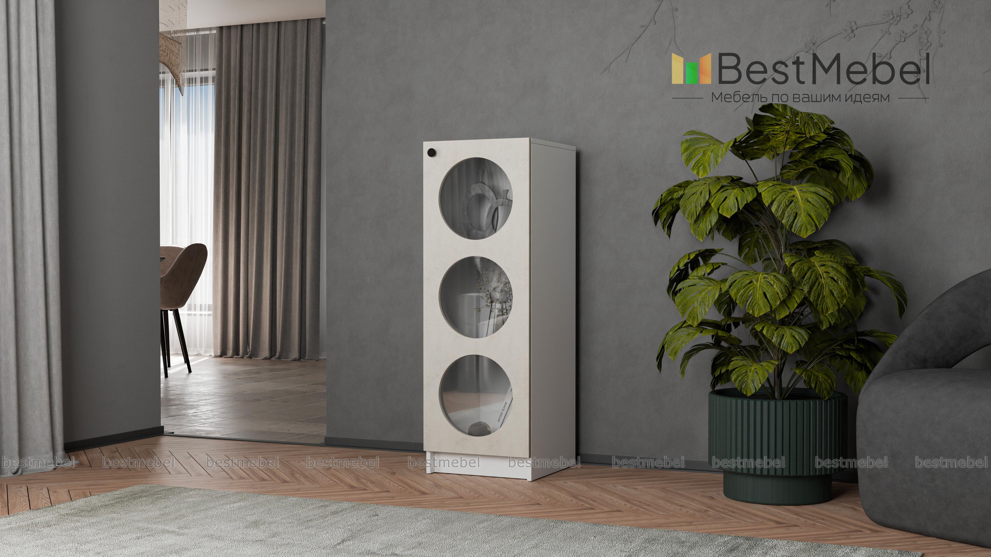 Тумба Руди 1 BMS — небольшая и очень стильная, просто создана для подростковых комнат и современных гостиных. На полках высокой узкой тумбы будут красиво смотреться ваши любимые книги, журналы и важные мелочи, а на столешницу можно поставить ночник, вазу или фоторамку. Три больших круглых выреза со стеклом придают уникальность и особую динамичность дизайну. Купить тумбу Руди 1 BMS вы сможете недорого в нашем интернет-магазине, по желанию изменив цвет и размеры.