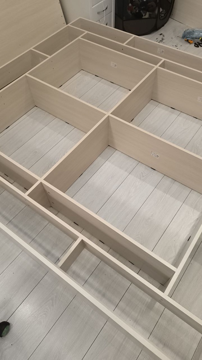 Шкаф получился отличным за свою цену, большое спасибо компании «Бест-мебель» за возможность изготовления мебели по индивидуальным размерам по доступным ценам. Собирали самостоятельно, и хотя полноценной инструкции не хватило, в целом всё получилось.Хотелось бы обратить внимание фабрики на то, что в шкафах с ящиками неудобно регулировать петли. Возможно, стоит предусмотреть какие-то отверстия в стойке или чуть утопить нишу с ящиками в шкафу для более удобного доступа к петлям.