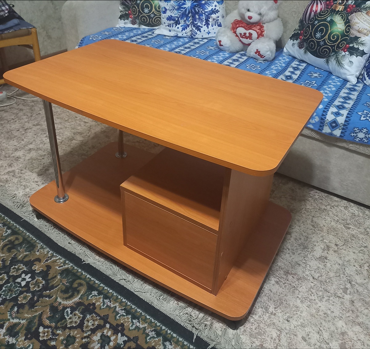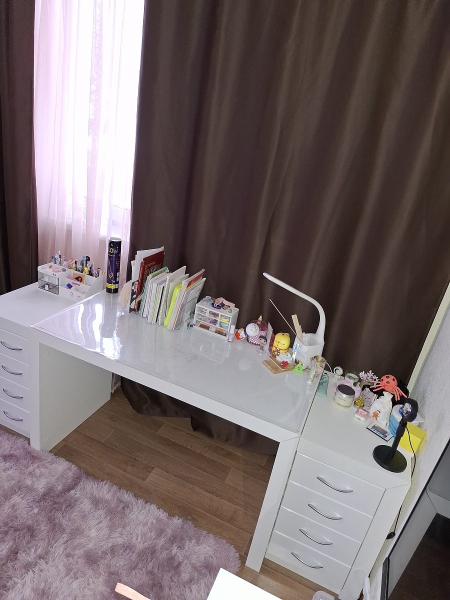 Заказ 00000252127, Угловой письменный стол для двоих Канзас 34 BMSЗаказывали этот стол для детской комнаты. Искали именно угловую модель, чтобы у каждого ребёнка было свое рабочее место. По ширине стол идеально вписался в размеры комнаты.Плюсы:Длина столешницы более 1,7 метра . Это очень удобно. Дети не мешают друг другу, свободно размещают учебники, канцелярию, у каждого теперь своя полка и по два отдельных ящика. Конфликтов из-за места теперь нет + в комнате стало легко поддерживать порядок.Качество сборки и материалы. Стол приехал в надежной упаковке, все детали были целы. Собирали по инструкции, процесс стандартный. Фасад тумб и столешница выглядят аккуратно, заявленного цвета «венге/дуб сонома».Угловая форма позволяет каждому сидеть в удобном положении.Отличное соотношение цены и качества.Недостаток: качество кромки на столешнице. Этот недостаток легко устраняется покупкой кромки на маркетплейсе за копейки. Запах ДСП держится какое-то время, но со временем проходит.Итог: Стол «Канзас-34» — нам идеально подошёл. Комфортно, уютно, удобно и со вкусом. Рекомендую.