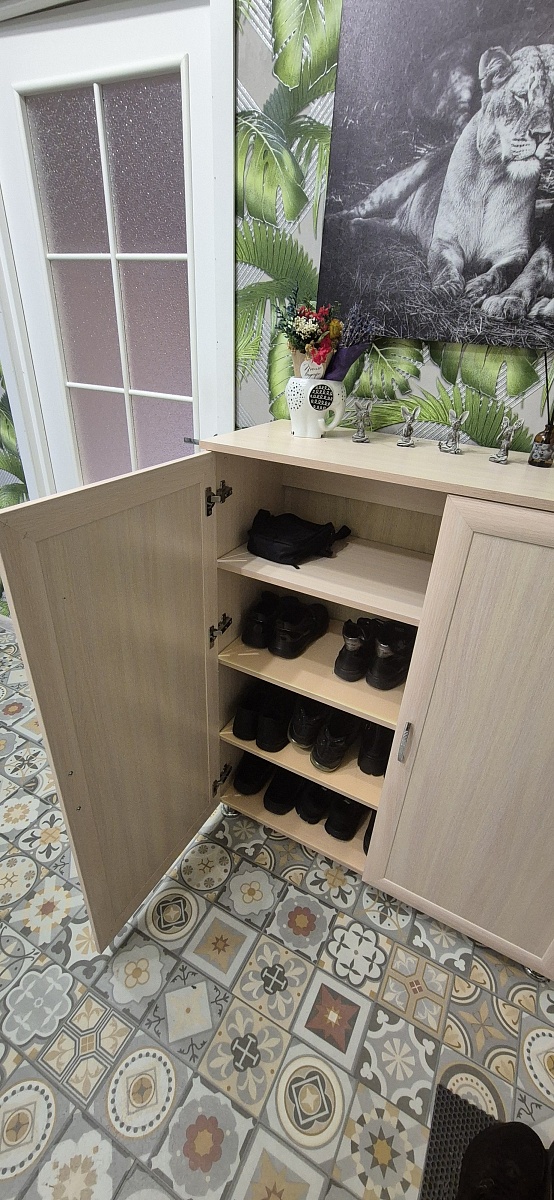 Заказ 00000803677, изделие Шкаф книжный 2 №1 BMS (800х2100х400)Шкаф мне понравился. Все детали сделаны аккуратно, засверловка в нужных местах. Две полки являются ребрами жесткости, так что шкаф стоит прочно, к тому же конструкция предусматривает возможность подвешивания на стену. Единственное что расстроило это отсутствие сзади снизу среза под плинтус, пришлось делать его самостоятельно, чтобы поставить шкаф вплотную к стене. Зато порадовало качество боковых стенок, после срезки угла лобзиком получился ровный край без сколов на поверхности. Все детали имеют наклейку с номером, указанным в инструкции по сборке, что заметно ее упрощает.Сделали и доставили очень быстро, особенно в сравнении с другой мебелью из разных магазинов. К примеру комод заказывала из другого магазина и его готовности я ждала месяц, тогда как шкаф приехал через неделю после оформления заказа.