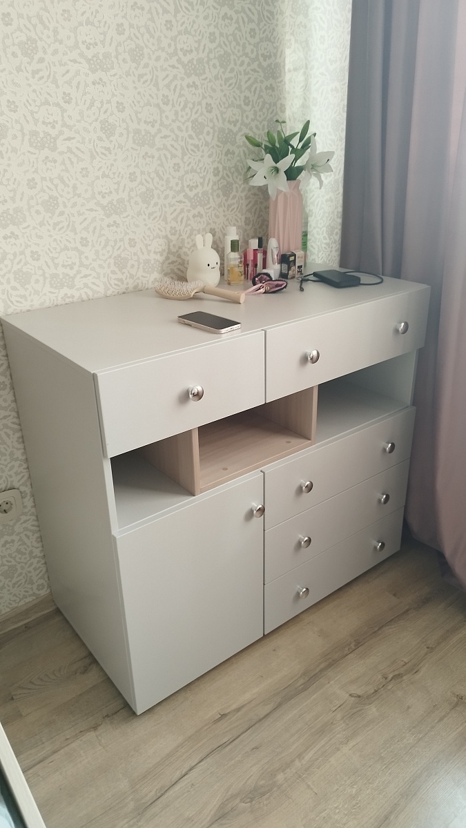 Искали большой и вместительный комод, нигде не могли найти, нашли на "Бэст-Мебель". Комодом очень довольны. Единственное, что было пару сколов небольших, но это мы устранили, и инструкцию хотелось бы попонятнее - не сразу смогли разобраться по ней + не четкий рисунок инструкции. Но в целом комод отличный,вместительный, не занимает много места, удобный. Цвет выбрали "орех Мария-Луиза.