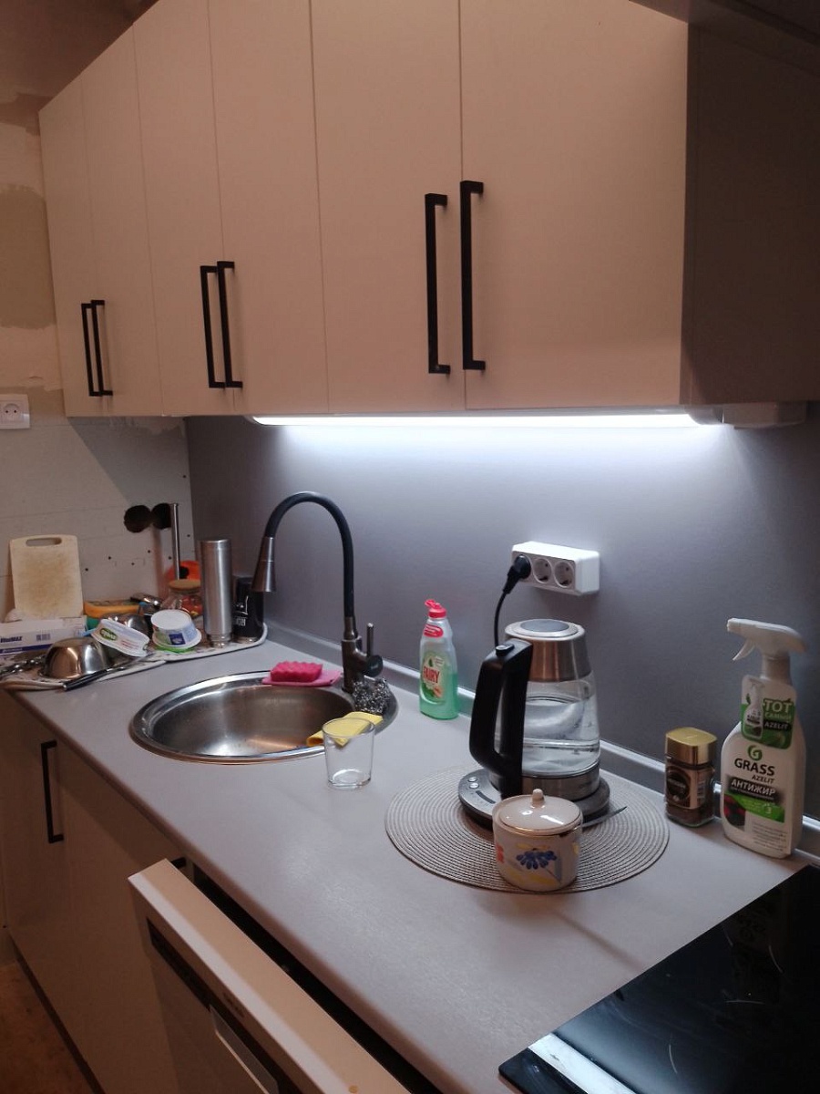 Белые фасады полностью преобразили кухню. Стало светло, визуально больше пространства. Практично, царапины и загрязнения почти незаметны, легко отмываются. Рекомендую!