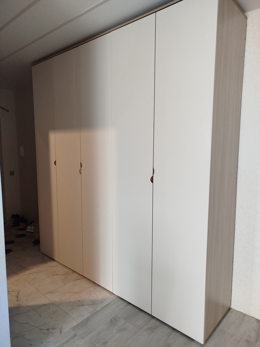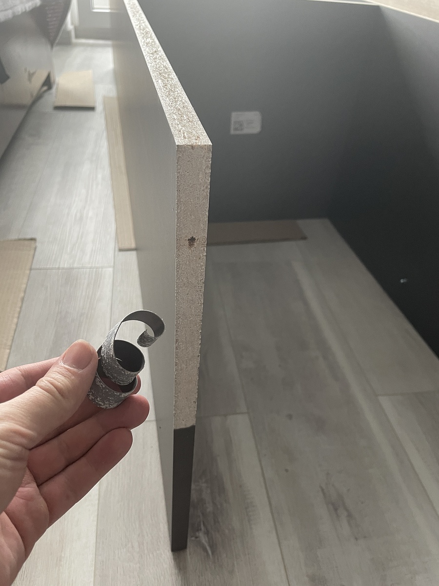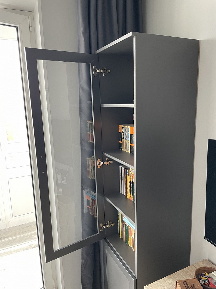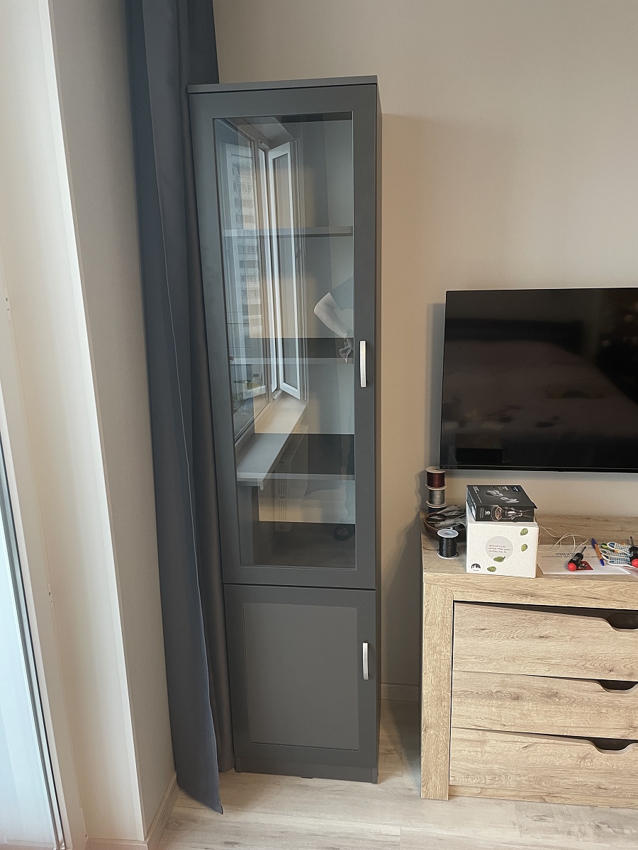 Заказ 00000638094, изделие ЭСКИЗ №00000638094 Колонка Млайн 2 BMS (450х2000х430)Заказывал колонку в феврале. Первый раз пользовался услугами этой фирмы, поэтому обо всём подробно. Плюсы и минусы будут идти вперемешку.Что понравилось, так это возможность при заказе настроить всё под себя - размеры, цвет каркаса, кол-во полок, срез под плинтус, фурнитуру, цвет стекла - всё можно править онлайн. Если бы я ещё заметил, что заднюю стенку из двп можно также утопить внутрь каркаса, то сделал бы и это, но, увы, оказался невнимательным. В итоге сделали всё точно по размерам. Но! Хотелось бы, конечно, побольше примеров фото различных цветов, что предлагаются на сайте - лучше в хорошем разрешении, а то ожидание и реальность могут не совпасть в итоге, когда изделие уже привезут на квартиру - у меня был цвет графит и ещё какой-то серый уголь, поэтому более менее всё сошлось, но я всё равно гуглил картинки, как этот серый уголь выглядит вообще - картинка на самом сайте на мой взгляд реальность не отображает.Также мне понравилось общение с менеджером. К сожалению, забыл как её зовут, но девушка была приветливая, ответила на все мои вопросы. Их было достаточно, так как я заказывал на этом сайте впервые и не знал, чего ждать. Посчитали вместе высоту полок и это привело к тому, что я решил добавить ещё одну. В общем, всё прошло довольно гладко. Дозвониться не составило проблем и вообще перезванивают быстро.Теперь минус - это время изготовления. В итоге за несколько дней до назначенной даты, мне позвонили и сказали, что придётся подождать ещё дней десять, так как нет одного из цветов (того самого "серый уголь"), что я указал в заказе. Такие моменты неприятны, но пришлось подождать.Доставка ничем особенным не отличалась - принесли тяжёлую коробку, занесли в квартиру - чуть было не забыли забрать деньги за заказ, пока я не настоял на этом) Оплата, кстати, по факту. Авансов никаких не было, что честно сказать, удивительно. Но и сумма у меня не ахти большая была, около 21 тысячи.Собирал сам. И тут, конечно, у меня большие претензии к инструкции - она представляет собой сборочный чертёж и помещается на одной стороне А4 листа, по сути этот же чертёж вы можете увидеть на сайте в фотографиях товара. Интересно, что это, что называет, типовая инструкция, как будто вы купили конфигурацию по умолчанию с сайта, то есть никаких дополнительные полки там не указаны и вообще размеры не указаны. Не знаю, может это обусловлено вариативностью возможной комплектации. Ну и нарисовано так, что над некоторыми местами приходится подумать, а вернее собирать приходится по интуиции. В итоге после сборки у меня осталось приличное кол-во крепежа, для которого я не нашёл никакого применения. Также на одной из боковых панелей часть дырок была заклеена на торце (см фото). Я уж было подумал - забыли просверлить, стал отдирать покрытие - и вуаля - под ним оказались нужные дырочки. Чувствуется, немножко колзох, если честно. А ещё, когда осталось только повесить дверь, и я радостно поднял её из коробки - под ней оказался такого же размера панель дсп цвета графит. По началу я немного запаниковал - как я мог забыть поставить такую большую деталь?! - но выяснилось, что на ней нет маркировки и вообще на инструкции её нет - так что это, видимо, запасное что-то или для жёсткости - не знаю. Так и стоит теперь у меня на балконе, сомневаясь в смысле свое