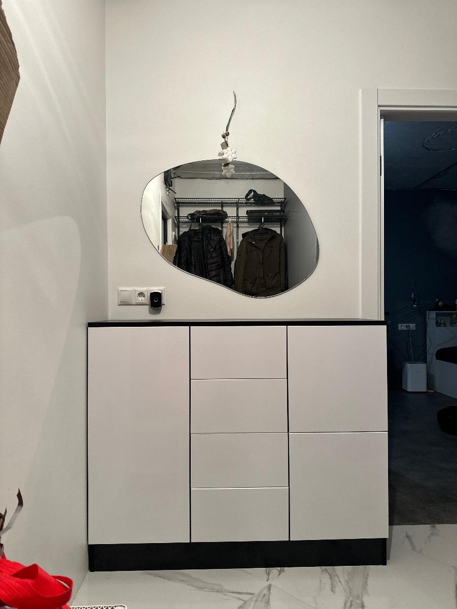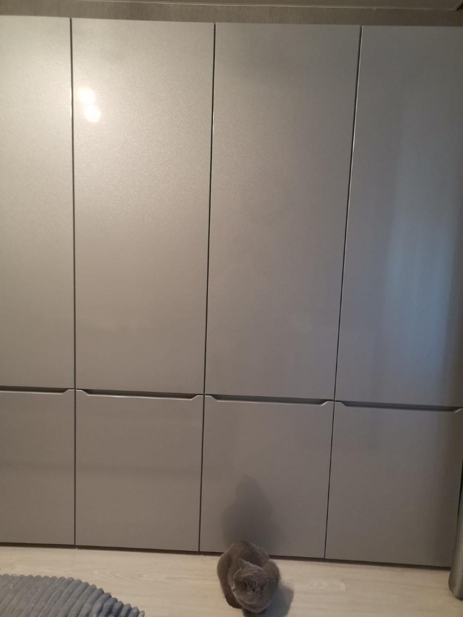 Получился отличный шкаф по моим размерам. Из минусов — странная конструкция купе-дверей. Когда открываешь, дверь съезжает со стопора с небольшим рывком. Мастер предупредил, сказал, что такая особенность механизма. Но мне кажется, можно было бы придумать что-то более плавное. Если бы была опция выбирать конструкция, я бы переплатила, но взяла что-то более удобное.