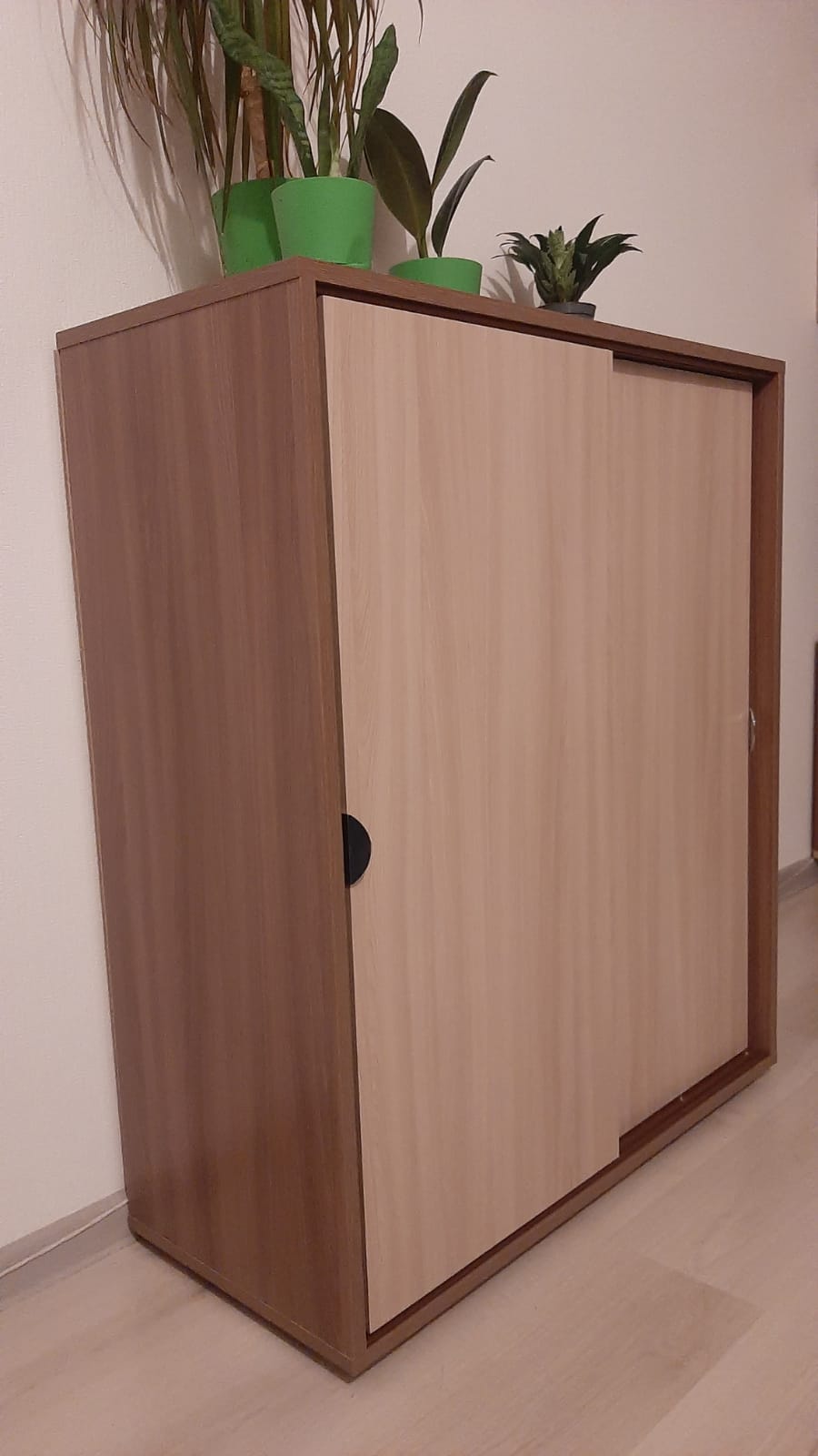 Уже не первый раз обращаюсь в эту компанию. Нравится, что можно заказать мебель по своим размерам, выбрать подходящие материалы и фурнитуру. Данный вариант тумбы (комода) понравился тем, что дверцы распашные как у шкафа-купе, не занимает много места, что не маловажно для небольшой студии (заказ № 888852 от 30 сентября). По срокам исполнения и качеству товара претензий нет, доставка вовремя. К тому же при неоднократных заказах на сайте, у меня накопилось много бонусов и окончательная стоимость изделия приятно порадовала Собирали самостоятельно по схеме, трудностей не вызвало. Все детали подошли, все ровно, без перекосов. Прекрасная тумба! По дизайну вписалась в остальную мебель и занимает совсем мало места. И даже небольшая студия кажется просторной, хотя мебели достаточно. Однозначно рекомендую производителя и магазин!