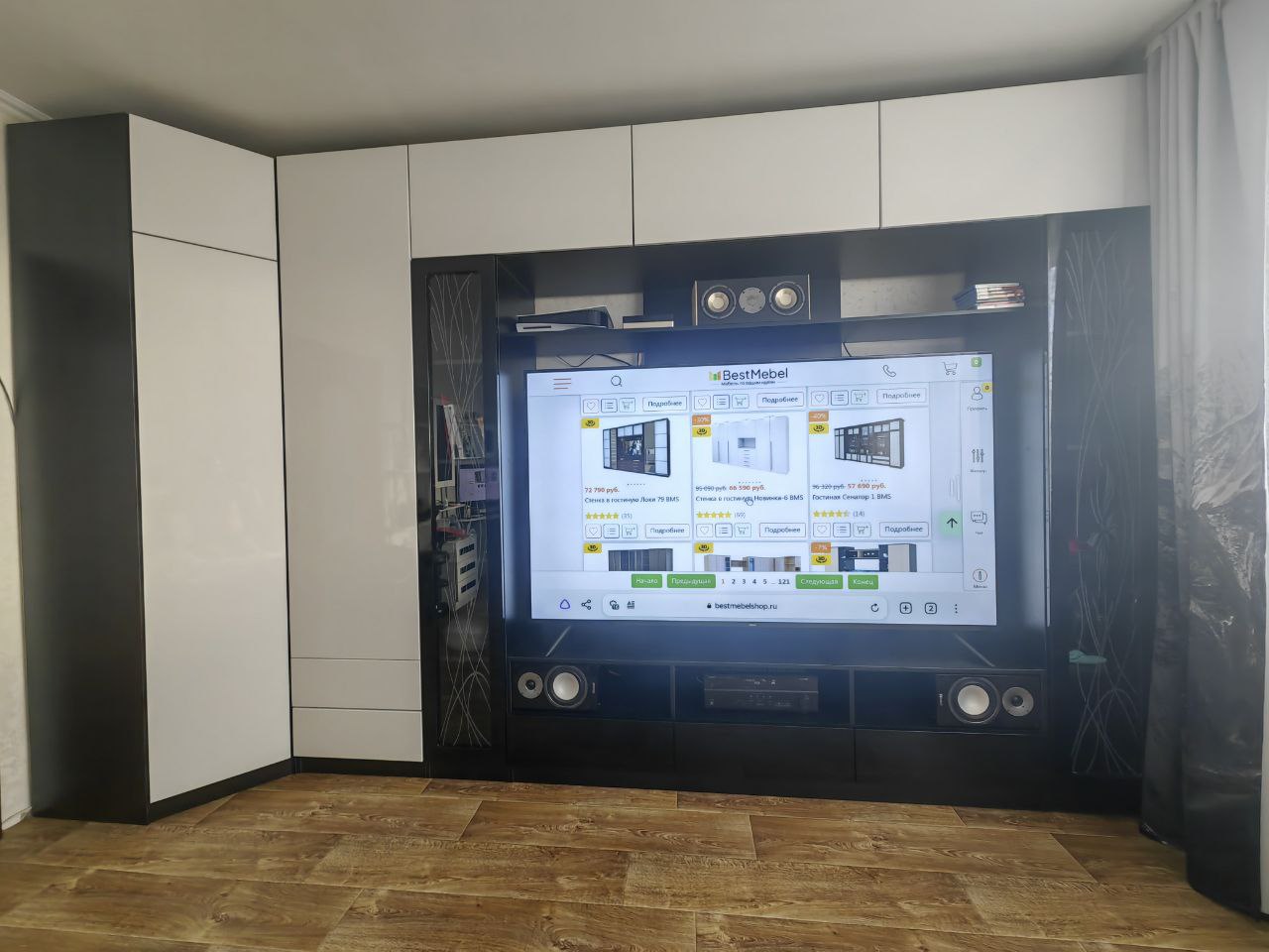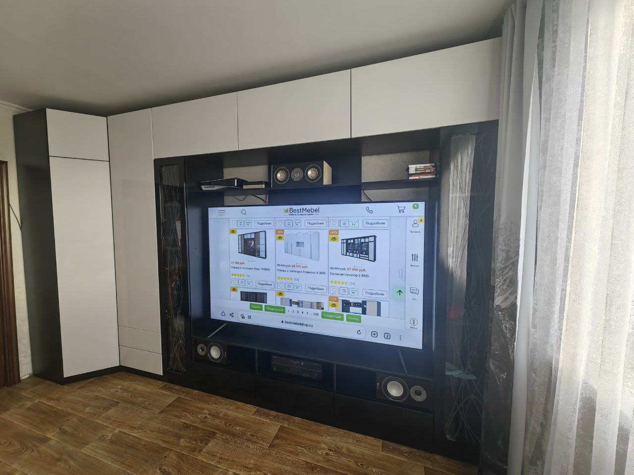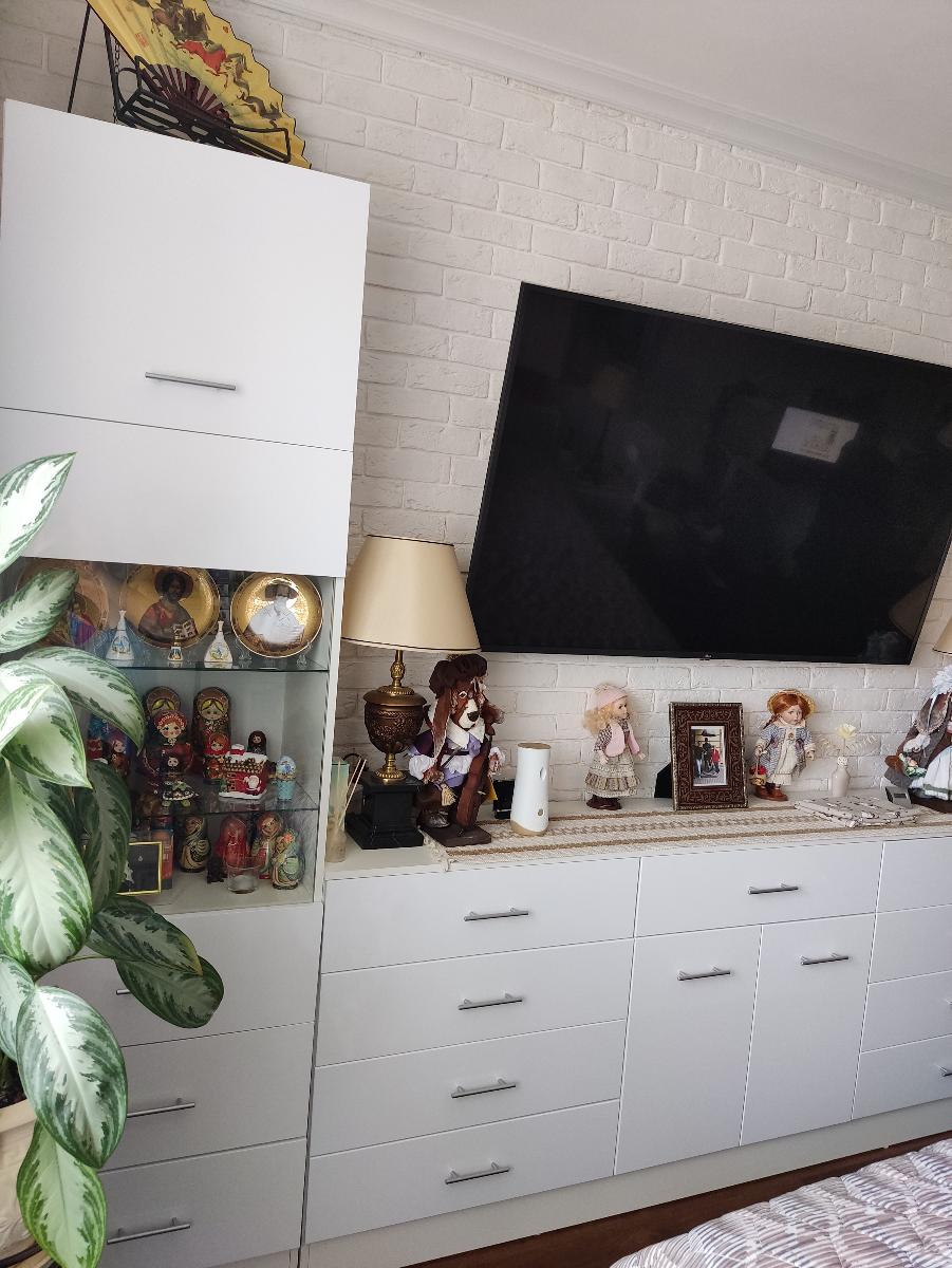 Обычно отзывы не пишу, но тут сделаю исключение. Гостиную делали по моему проекту, хотел по максимум до потолка и в ширину комнаты. По ширине зазор до трубы составил всего 3 миллиметра, до потолка 10 сантиметров. Мебель поднимали грузчики около часа (В лифт не помещалось из-за большого размера), их было очень жалко, т.к. очень тяжелые коробки были. Когда уже её начал распаковывать сборщик (Александр – вообще мега человек, в одиночку всё это собрал, я сперва ему не поверил, что он один её соберёт). Из-за размера под потолок её собирали уже на месте стоя (Собрать на полу не получилось бы из-за высокого размера). Так же в квартире кривые полы, и сборщик как мог это исправил (Вернее исправил очень хорошо). В итоге я остался очень доволен. Был нюанс, что в комплект не доложили петли угловой, но сборщик сам об этом уведомил компанию, и мне их довезли и сборщик приехал поставил дверь. Мебель очень добротная (недавно маме обустраивал квартиру и видел, что продаётся в других местах). Всем советую!