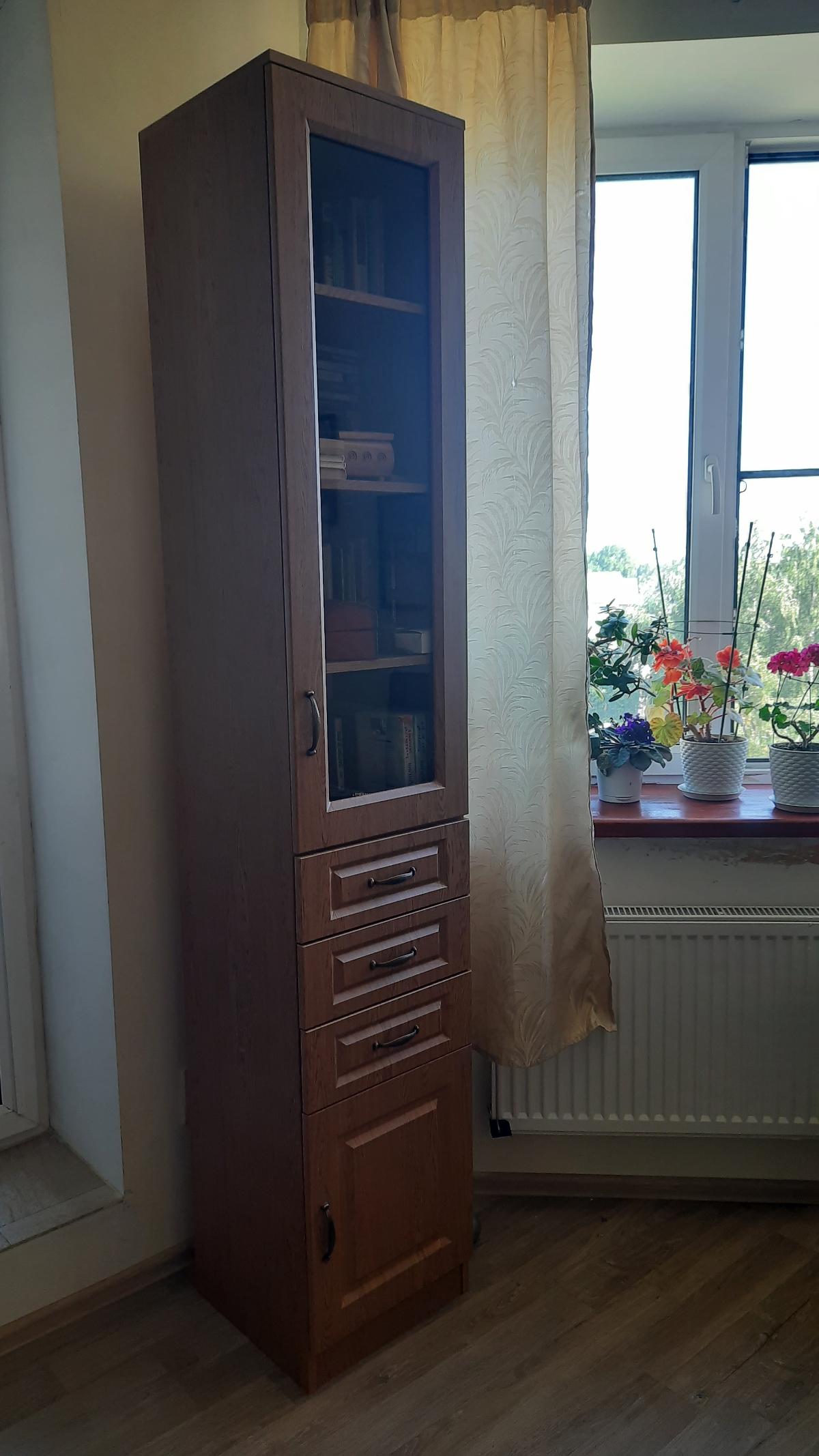 Когда увидела модель этого стеллажа, сразу влюбилась в него. Размеры по ширине и глубине подходили идеально для уголка, в который я решила его поставить. Единственное, я увеличила высоту до 220 см.Материал выбрала МДФ и цвет Дуб-1421-28. Выбрала фурнитуру, которая мне понравилась. Цена, конечно, выросла в 2 раза от первоначальной.После оформления заказа со мной быстро связалась менеджер, уточнила мой заказ. Предложила посмотреть эскиз шкафа и внести правки, т.к. высоту стеллажа я изменила, необходимо было уточнить расстояния между полками. Также предложила выбрать в какую сторону будут открываться дверцы. Заказ пришел в точные сроки, указанные менеджером.Сейчас стеллаж стоит именно там, где я планировала его поставить, выполняет свою функцию хранения книг и бумаг, ну и конечно, радует глаз. В целом, заказом я очень довольна (Заказ 00000389265). И отдельное спасибо менеджеру за вежливость и внимательность к заказу!
