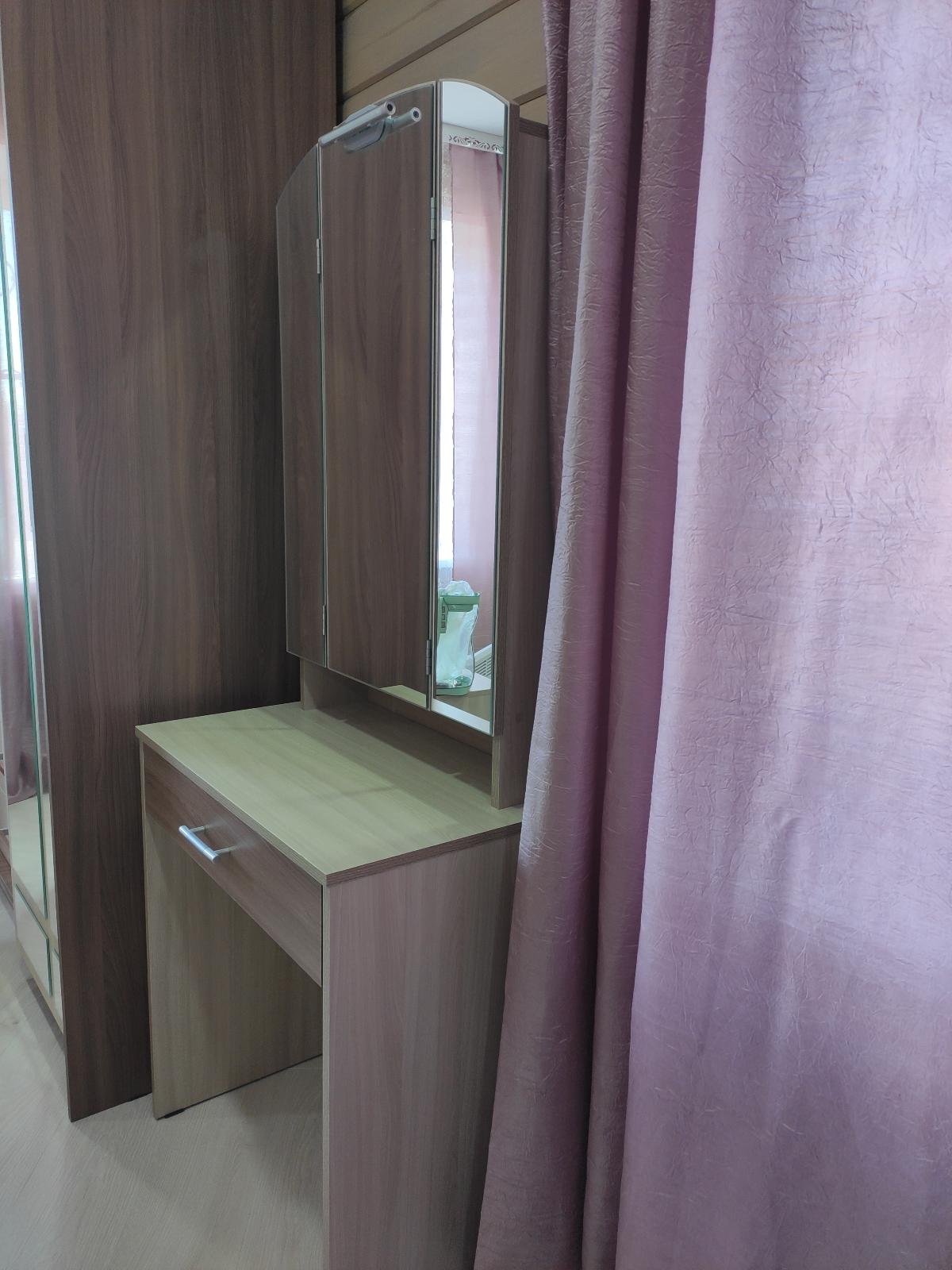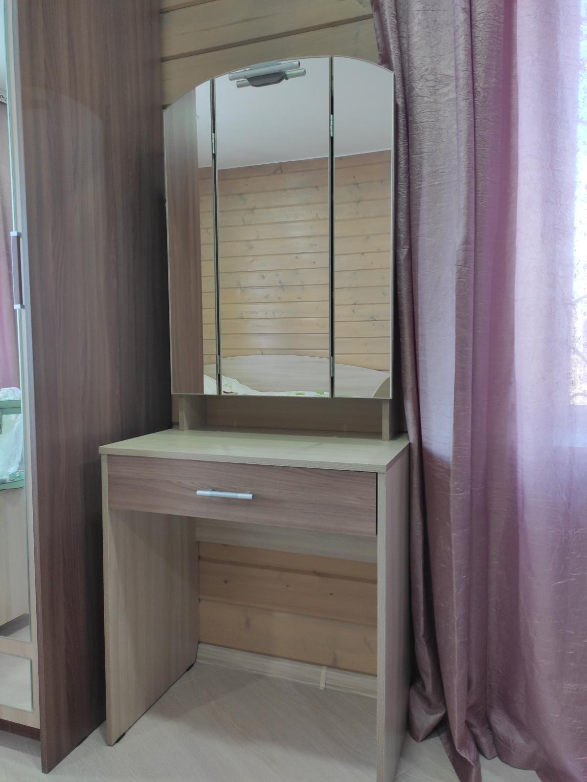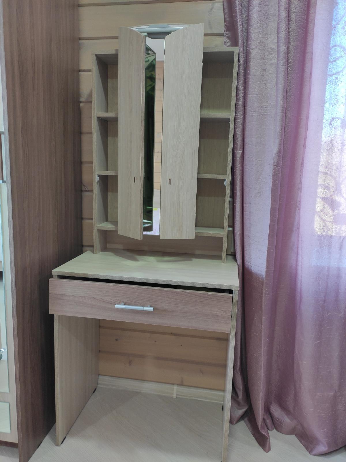 Давно мечтала о туалетном столике с зеркальными дверцами. И наконец я нашла такой в Бестмебель (заказ 00000213086, изделие Туалетный столик Ривьера!) Плюсом ещё послужило и то, что можно было заказать в нужных размерах. Я выбрала:700х1700х440, а так же выбрать цвет изделия. Доставили очень быстро, качество отличное, все отверстия для крепления совпадают. Собирала сама. Столик классный, много места как раз для тюбиков и баночек, часть их можно спрятать за боковыми открывающимися зеркалами, что очень удобно, часть в ящик под зеркалом. Столик понравился, своей компактностью и вместительностью. Очень довольна своей покупкой.