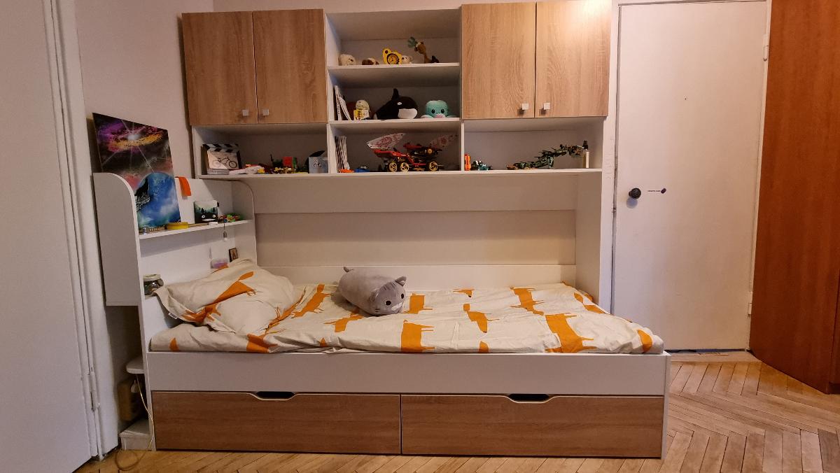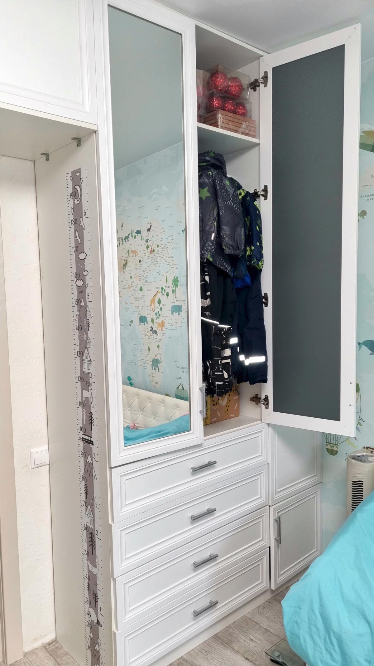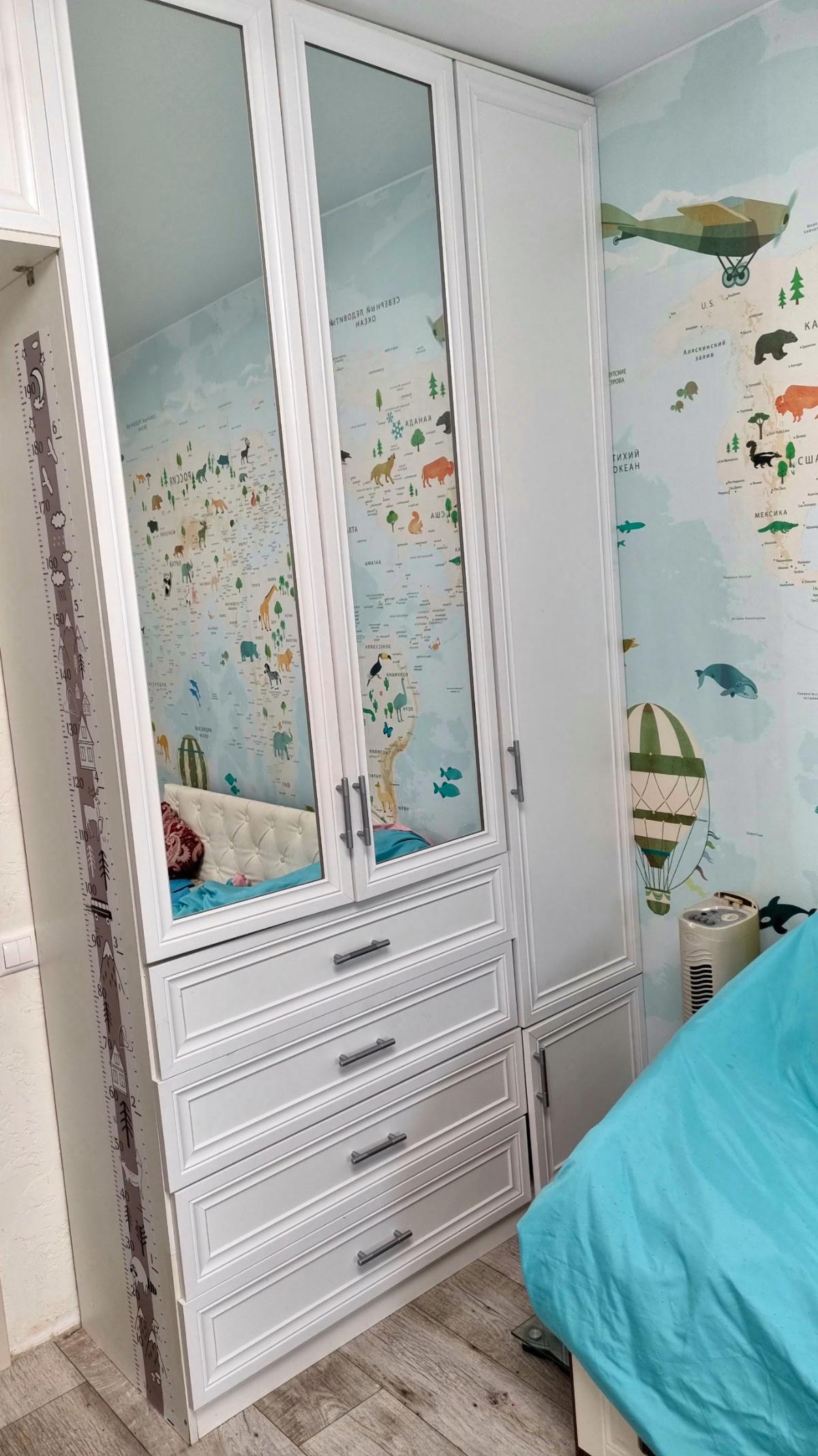 Кровать классная. Подойдёт для ребёнка и помладше и постарше.Много места для хранения. Всё крепко накрепко между собой стягивается, надёжная конструкция. Правда на некоторых деталях есть небольшие сколы. А при установке матраса высота спального места так изменилась, стало выше и ребёнок стал биться головой об полки.Пришлось перезаказывать боковые стойки и оплачивать работу сборщика заново.Так что будьте внимательны при заказе, укажите свои размеры по высоте полок с учётом высоты хорошего матраса.