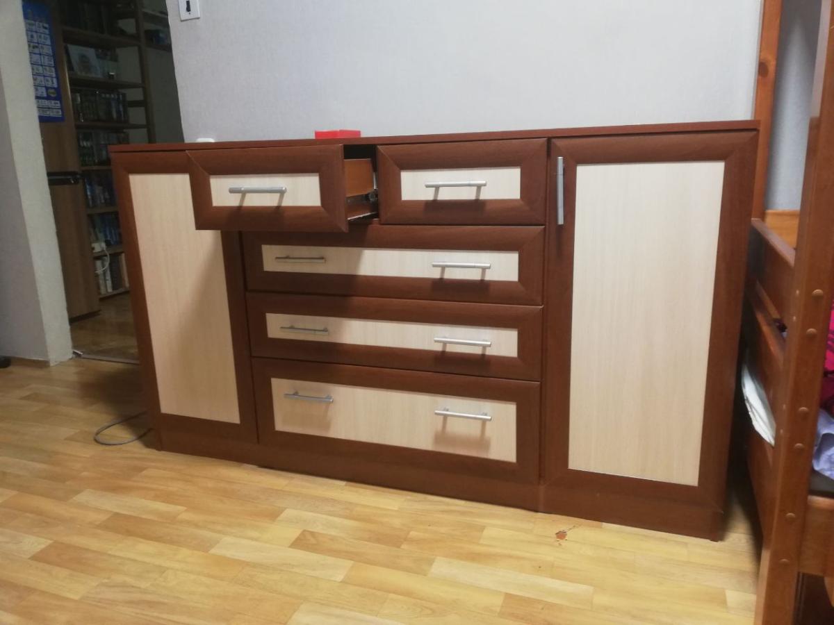 Хороший комод, собирается легко. Ящики выдвигаются плавно, пользуемся 2 месяца, всё устраивает. И по качеству и по дизайну всё ок! Изготовили в срок, как и договаривались, с доставкой тоже не подвели. Вообще фирма нравится, не первый раз заказываем здесь мебель.