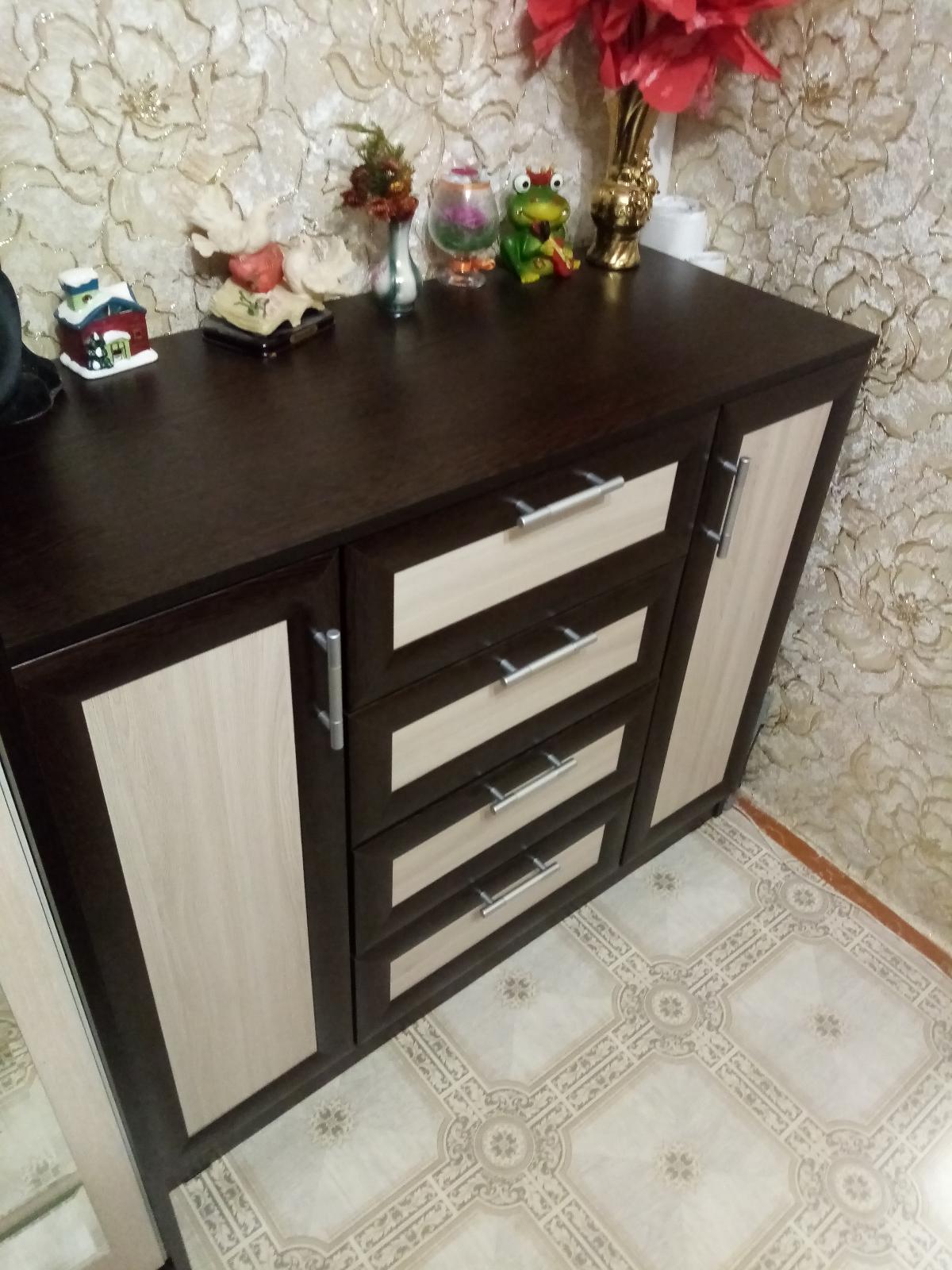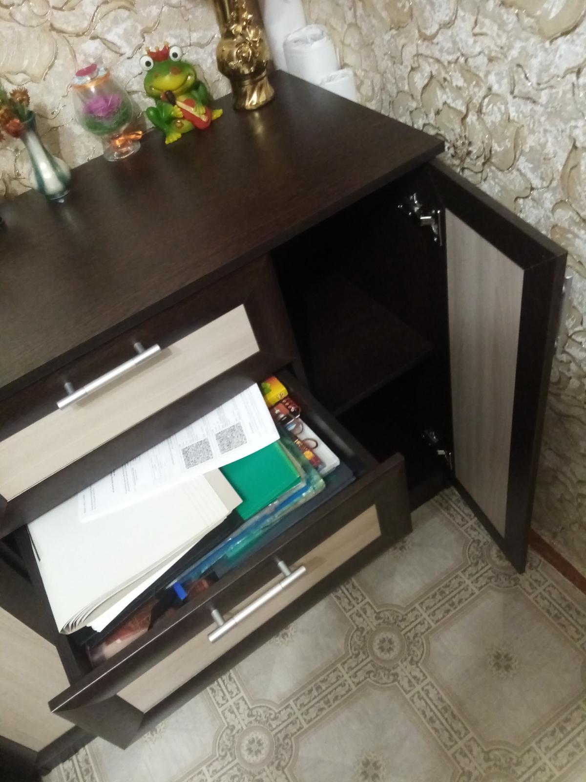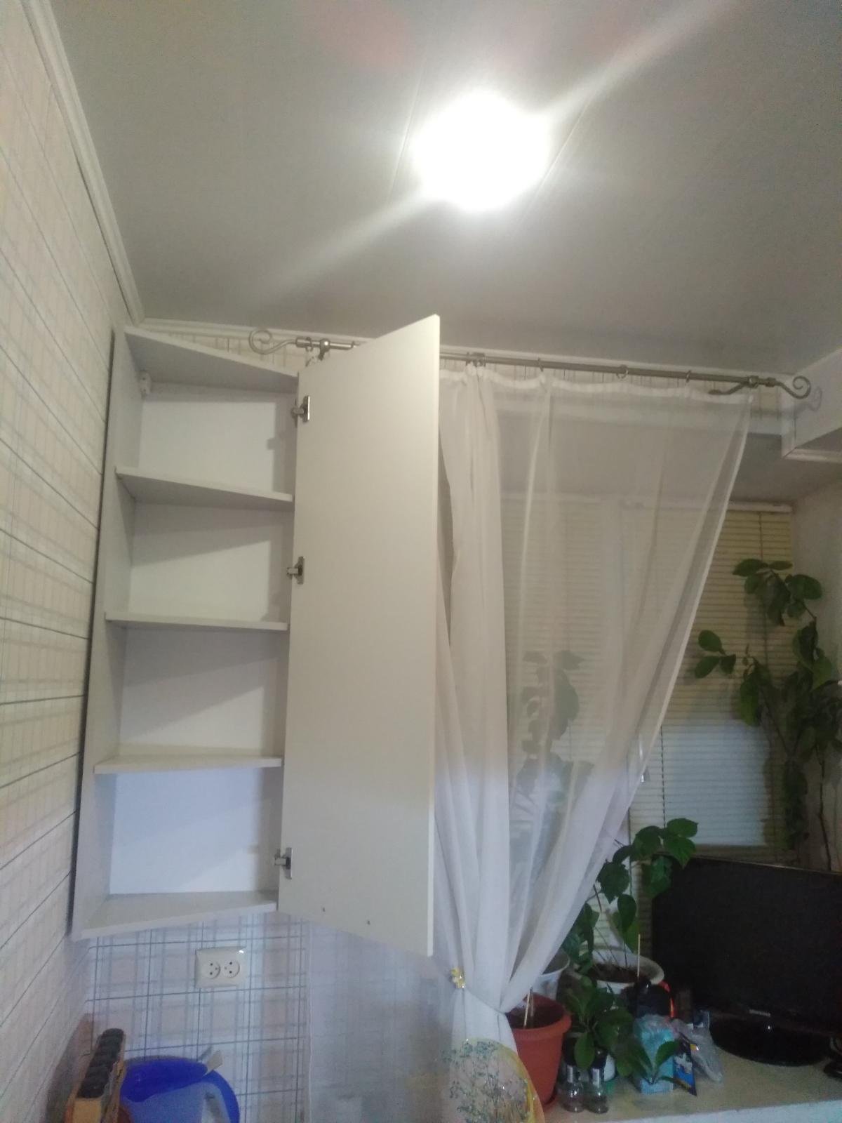 Кухня очень маленькая 5м2, поэтому заказал такой шкаф. Шкаф навесной был сделан по индивидуальным размерам 400х1180х320мм (ШхВхГ) внутри 3 полки на равном расстоянии 275мм. цена ящика получилось 6800р. Доставка бесплатная до подъезда. Изначально ошиблись и прислали мне дверку коричневую и была забоина от транспортировочной ленты, (непонятно зачем так силино стягивать одну доску, хватило бы и скотча), сразу позвонил в гарантийный отдел, оставил заявку и через неделю прислали новую дверцу в моей расцветке, спасибо магазину. В комплекте были евровинты, полкодержатели, петли, заглушки-наклейки, кронштейн. МИНУС: не было 12 саморезов для 3-х петель, поставил свои. Положили лишние болты разной длины в перечне написано для ручек и мебельные стяжки непонятно зачем см фото. Могли бы за такую цену положить еще 3-4 дюбель-гвоздя для крепления кронштейна к стене пришлось искать и ставить свои. В целом я шкафом и магазином доволен. Спасибо!