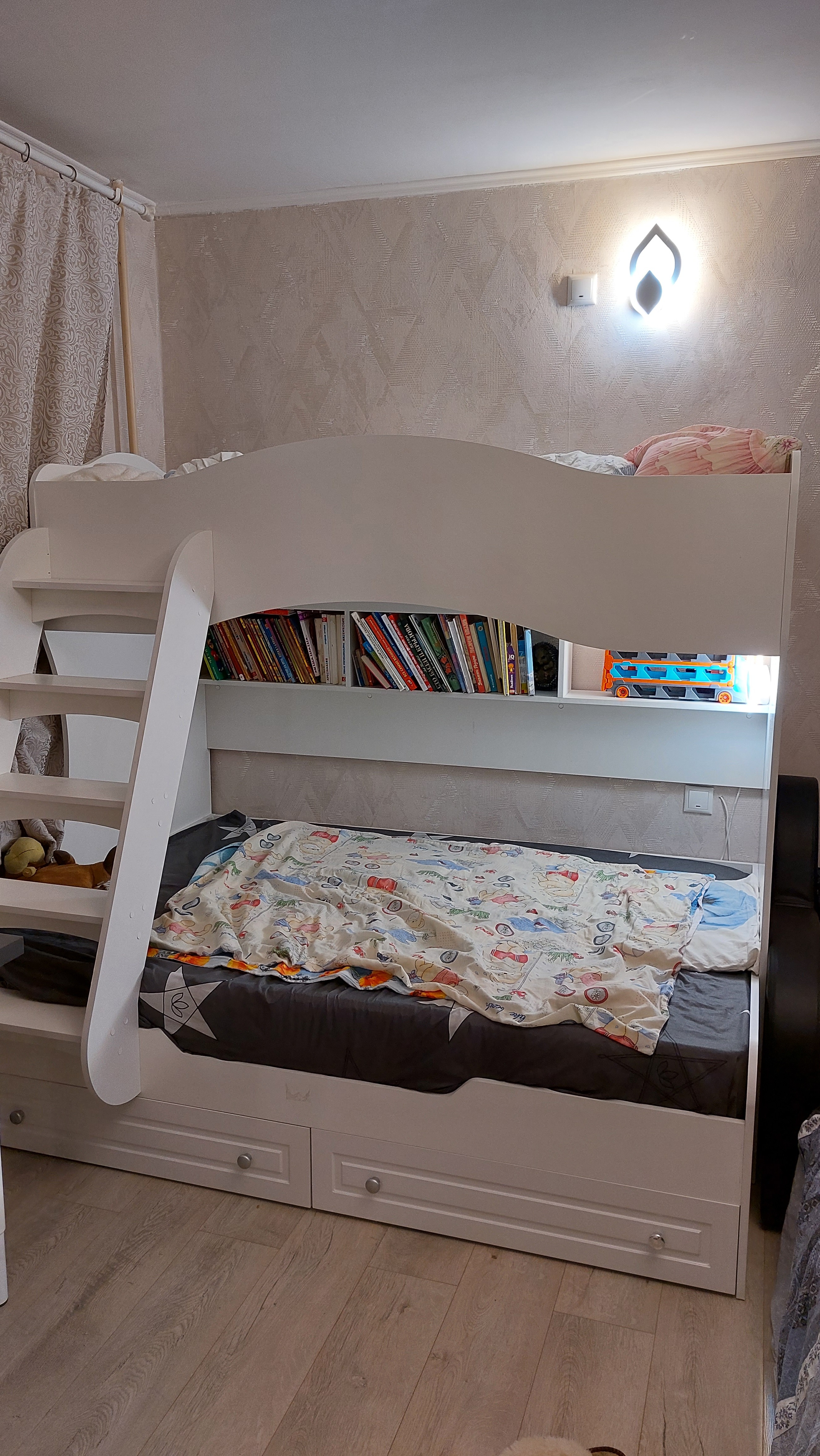 Шкаф удобный, подобрали себе размер , так как комната маленькая, это супер, но замучались собирать, инструкции нормальной нет, хорошо опыт в сборке имеется, собрали и слава богу, большой минус в том,что не были просверлены отверстия под шурупы для верхней направляющей для двери, пришлось измерять и сверлить самостоятельно!!!,а это не просто,если с размерами ошибёшься, то дверь купе не будет открываться легко и еще задняя стенка из двпешки по размеру чуть больше шкафа, что не очень красиво. Муж матерился, но всеже собрали.