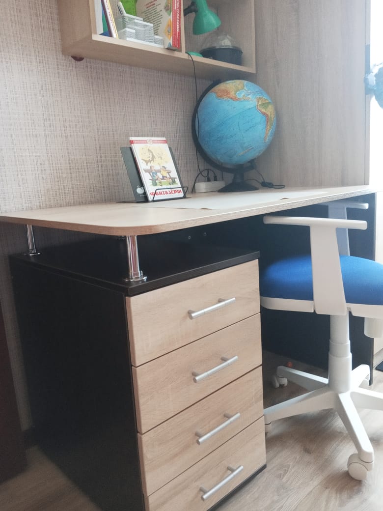 Искали стол для второклашки, смотрели много вариантов. Этот стол понравился больше всех: размер, функционал, дизайн - всё понравилось. Изготовили очень быстро, привезли оперативно. От сборки отказались и правильно сделали - муж собрал без проблем. Стол отлично вписался в интерьер, качество всех комплектующих отличное. Спасибо производителю, всем рекомендую!