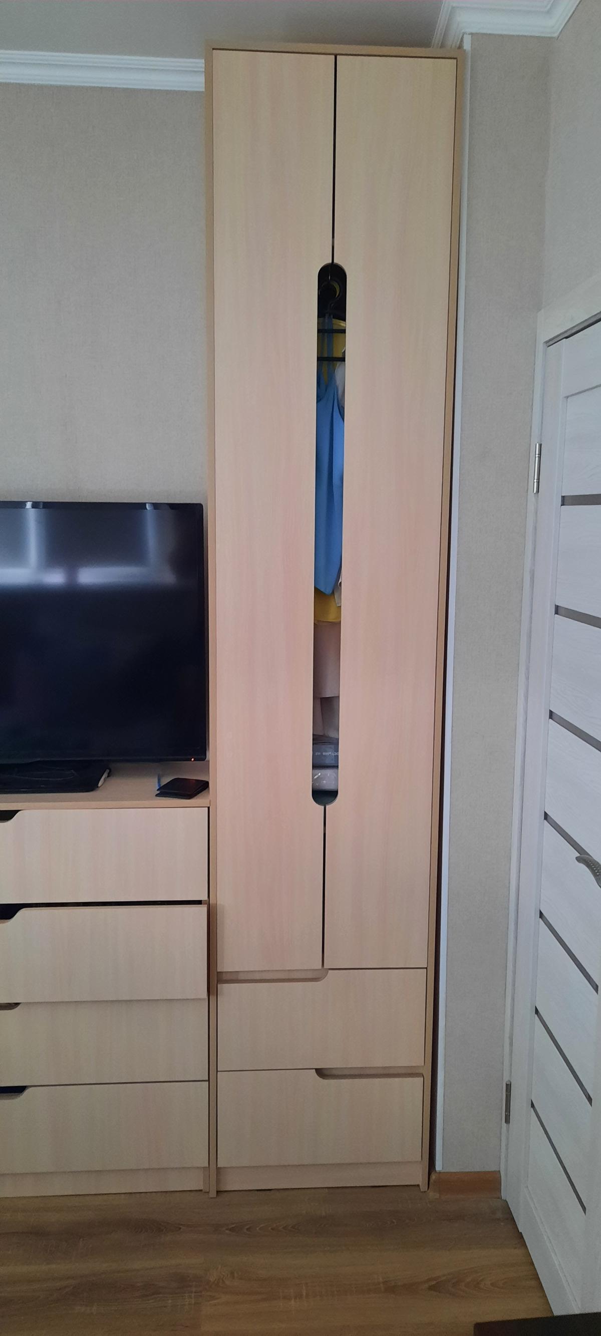 Заказ 00000668172. Заказывали сразу два шкафа вместе с комодом по своим размерам, в итоге получилась полноценная стенка. Вместительные, очень удобные. Легко собираются. Спасибо огромнейшее магазину.