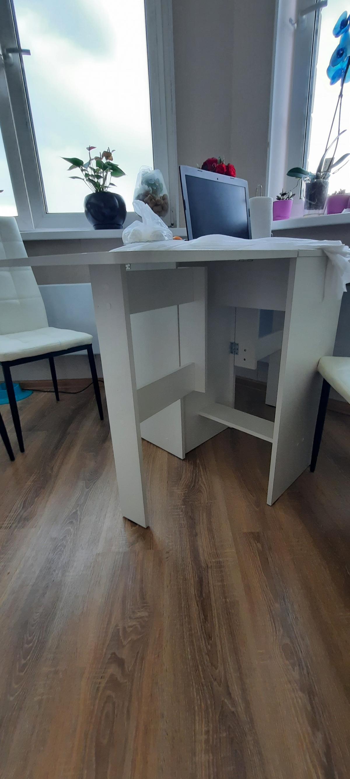 Заказ 00000657138. Очень удобный стол. Хорошо вписался в белую кухню. Вместительный. При необходимости раскладывается в стол на 10 персон. Покупкой очень довольны.