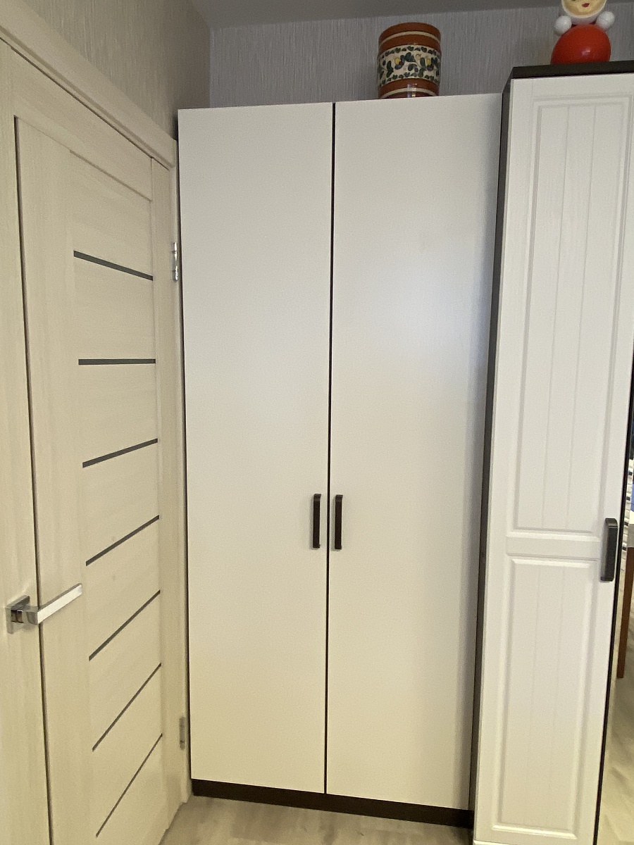 Шкаф распашной Остин Лайт 3 BMS (1400х2600х500). Прекрасный шкаф, хорошее качество исполнения. Прихожую обставила всю из Бестмебель (интересовал именно функционал: чтобы было куда сложить шапки, шарфы(ящики комода), повесить одежду (шкаф), бросить бумаги и сумочку по приходу (консоль)).Был брак на средней дверке на самом видном месте на уровне глаз, попросила заменить-заменили в кротчайшие сроки+доложили петли на две двери(12штук)- изначально их положить забыли, выяснилось в ппоцессе сборки только.Сама заменила штангу (в цвет, с покрытием), "родная" не нравилась-очень уж сильно об нее гремят вешалки.Заказом довольна, рекомендую👍. Огрехи есть, но если не на видном месте-закрываем глазки😉, цена устраивает.