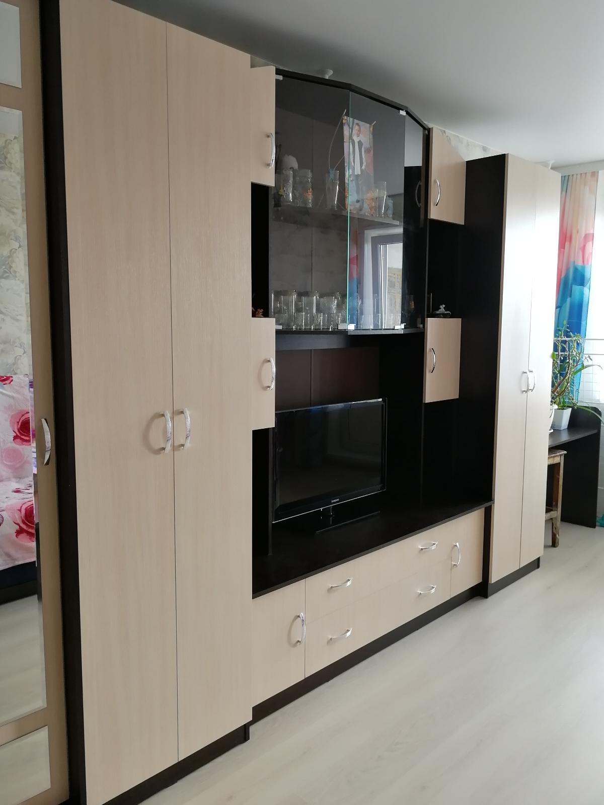 Заказала стенку Макарена BMS (заказ 00000338609 от 10.01.2020) в январе 2020 г. и вот решилась написать свой отзыв. На самом деле стенка современная, практичная и самая дешёвая из того что я смогла перерыть в интернете. Очень удобно что на сайте BestMebelShop я заказала эту стенку с удобной для моей квартиры высотой 2300 и глубиной 50 см. У нас в квартире посередине стены спрятана труба с отоплением (батарея), которая выходит наружу сверху из потолка и снизу из пола. Поэтому пришлось искать такую модель стенки, где можно сделать вырез на задней планке внизу, так чтобы спрятать трубу, ну и высоту стенки подобрали так чтобы ни с какого ракурса трубы из потолка не было видно.Выбрала классическую черно-белую расцветку стенки, на мой взгляд стильно и современно. Есть два шкафа, они выглядят достаточно компактно, но очень вместительные, один с полками, другой со штангой и двуми полками сверху и снизу. Над телевизором полки со стеклянными дверками. По бокам есть открытые полки и полки с дверками. Внизу под телевизором два больших выдвижных отделения, а по бокам две дверки с полками. В целом в неё убирается очень много вещей, да и выглядит очень красиво. Муж собирал сам, пришлось конечно попыхтеть, но оно того стоило.Рядом со стенкой поставили шкаф Комфорт 6 BMS с этого же сайта, с такой же расцветкой и фурнитурой. По моему получилось очень даже не плохо. На BestMebelShop заказываю не впервые, поскольку очень довольна ценой и качеством. Один минус всё же есть - на всех деталях мебели на лицевой стороне приклеены заводские наклейки, они очень тяжело снимаются. Проблему решила с помощью фена и жидкости для снятия лака. Мне моя стенка очень нравится, нисколько не пожалела о покупке. Если вам Макарена BMS приглянулась берите и не думайте, не пожалеете!