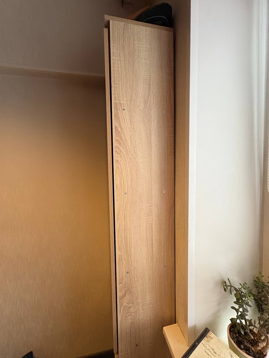 Хотел шкаф, но места мало. Нашёл на Ozon. Слегка выпивший, снял размеры. Шкаф пришёл — на место встаёт. А то, что не всё открывается, — это проблемы шкафа. Пришлось самому чуть‑чуть доработать, но это мой косяк. Шкафом доволен. Руководство по сборке почему‑то не открывается на компьютере; с телефона читать не очень удобно, но это не критично.