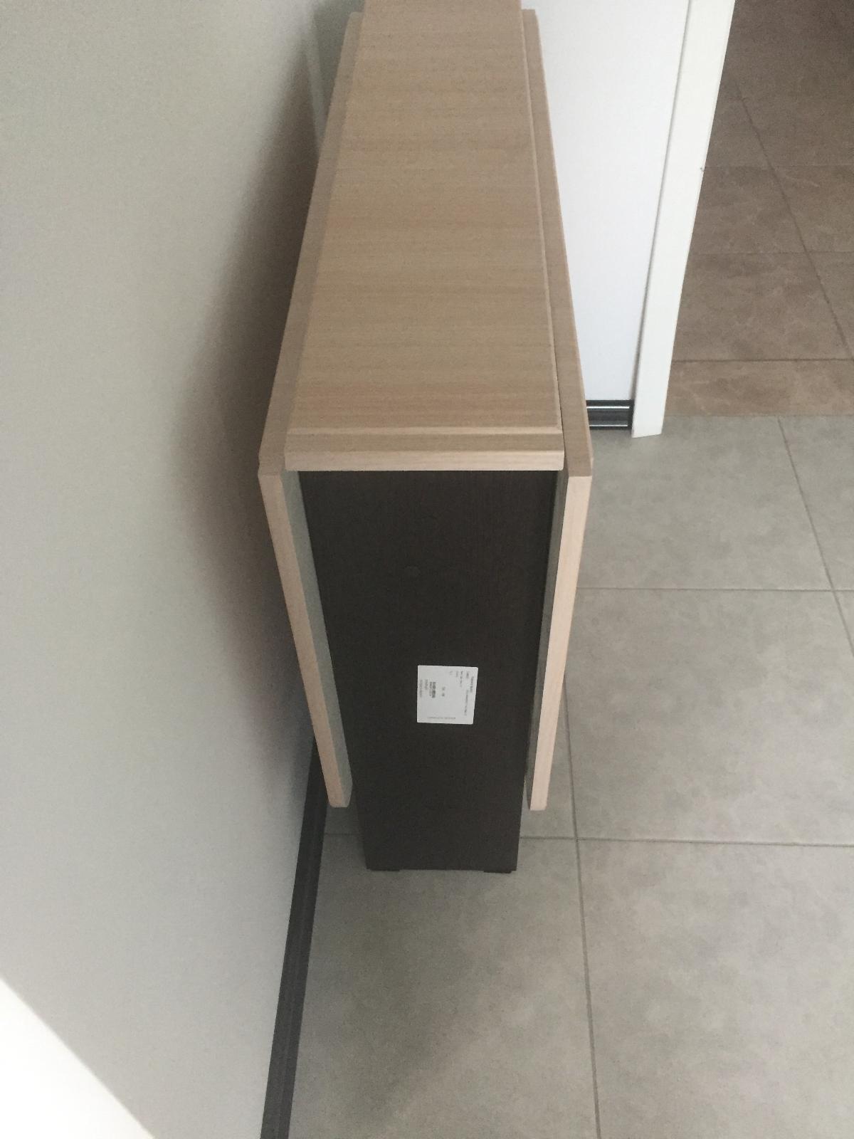 Шкаф нас удивил. Он оказался длинным и тонким (НЕ таким широким и коротким как на ваших картинках). Матового стекла в нем тоже нет. Он весь деревянный (или что там за материал). Мы думали хранить в нем папки, но они, конечно же, НЕ везли. В итоге мы приспособили его под детские вещи и, в целом, довольны. Смотрится стильно, как видите на фото (сверху лежит рамочка, не обращайте внимания). Убираться очень удобно, когда мебель висит. Благодаря вашей компании столы у нас тоже навесные и мы счастливы)